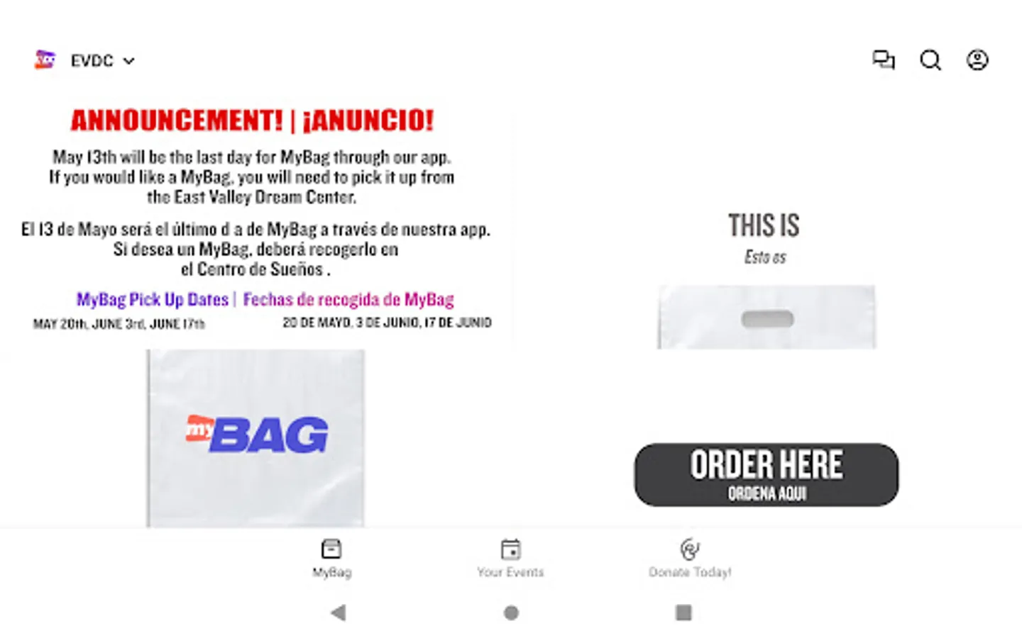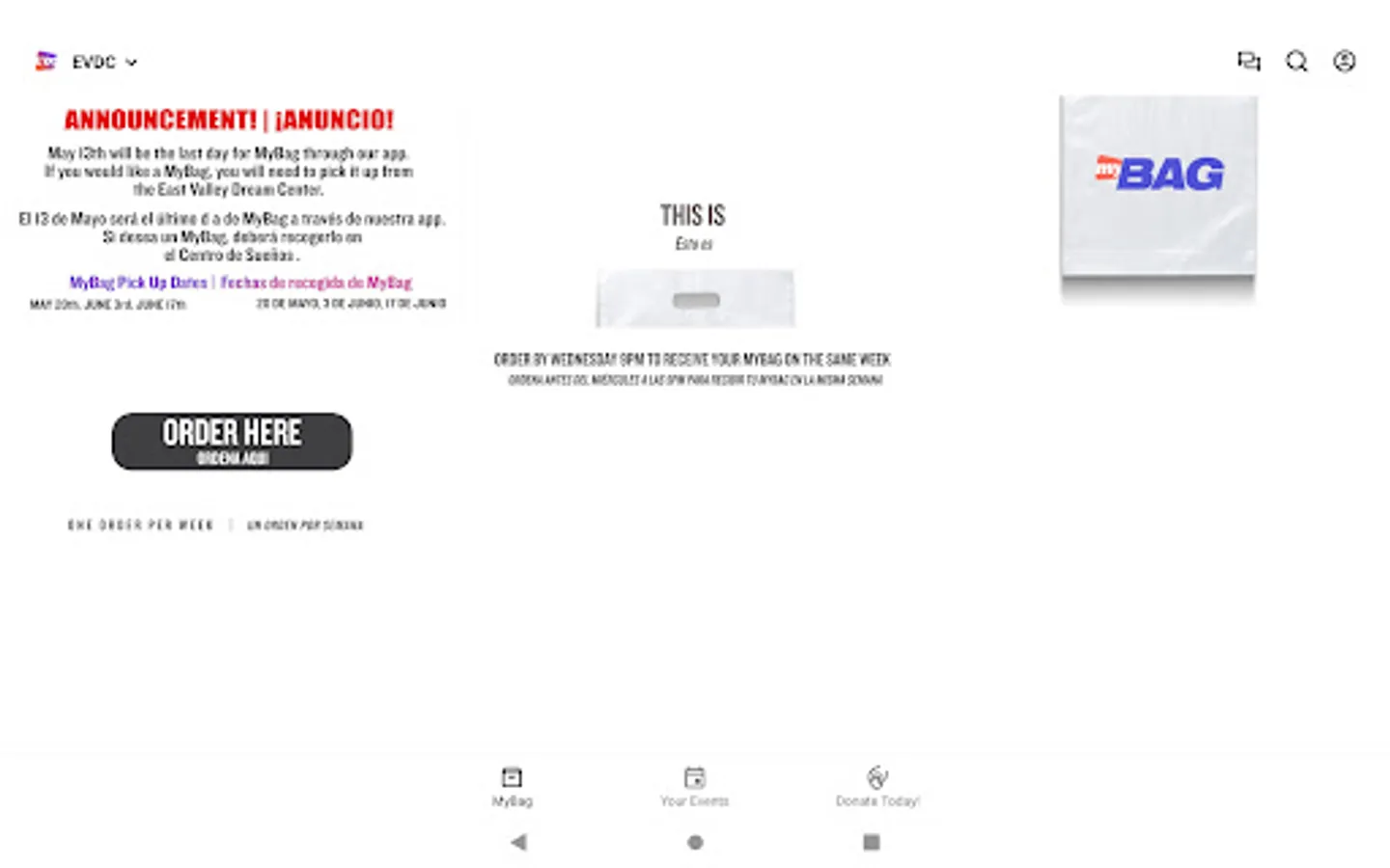 The East Valley Dream Center exists to eradicate poverty through community outreach and free acts of service. With this app we get to better serve the City of Chandler and beyond with our MyBag ordering program we can reach out community by being Love being Change and being Different!