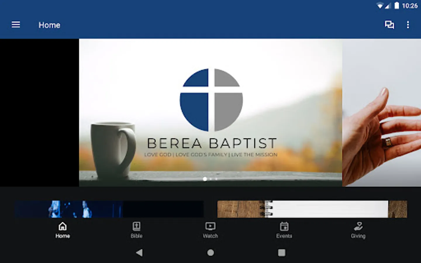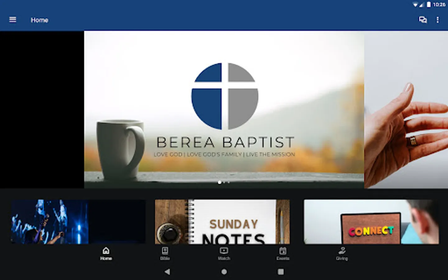 The Berea Baptist mobile app is here! Stay involved with online services, online giving, community outreach, online devotionals, sign up to serve, and classes.