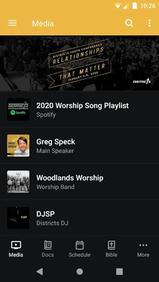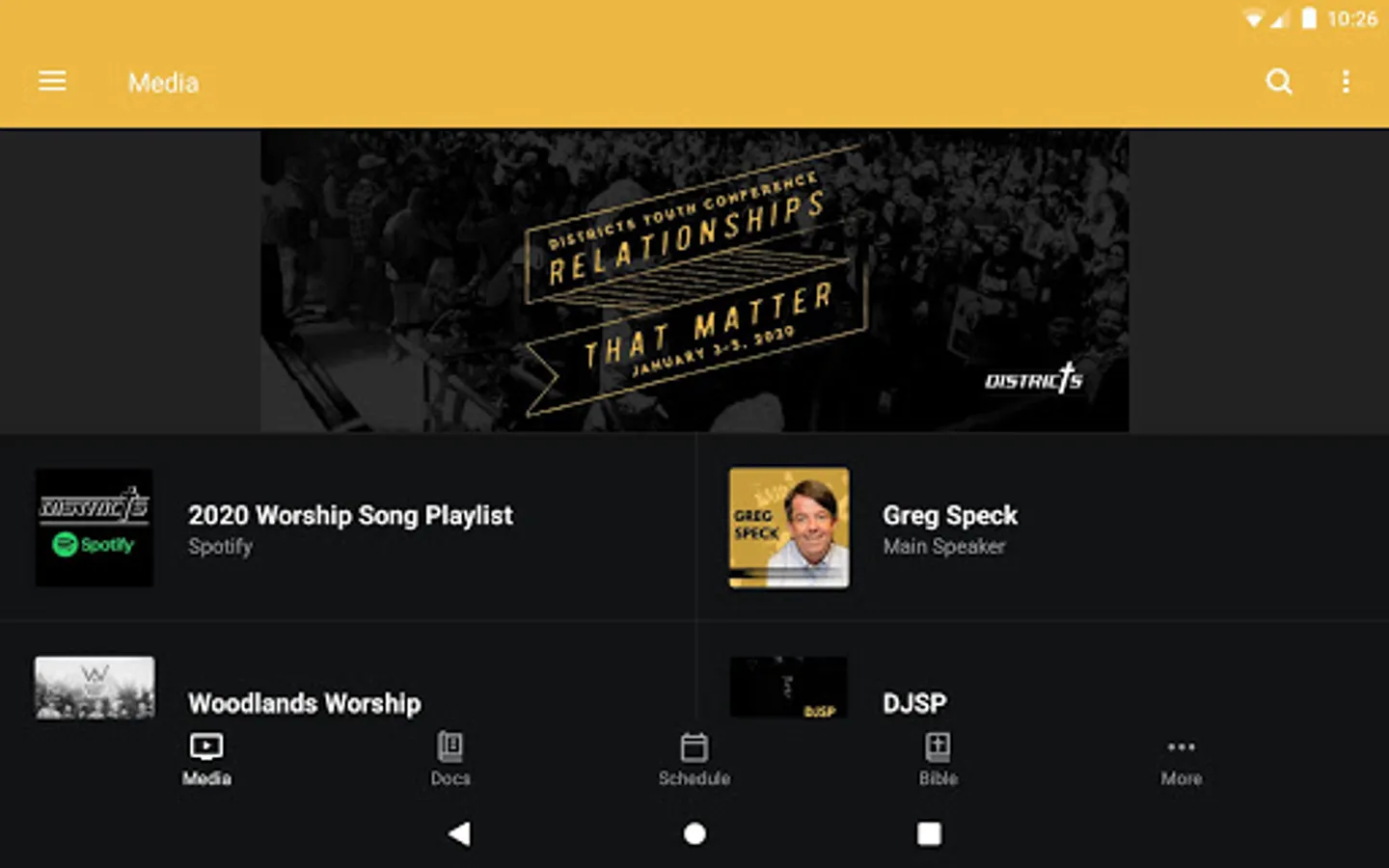 The Districts Youth Conference App was created with the Subsplash App Platform.