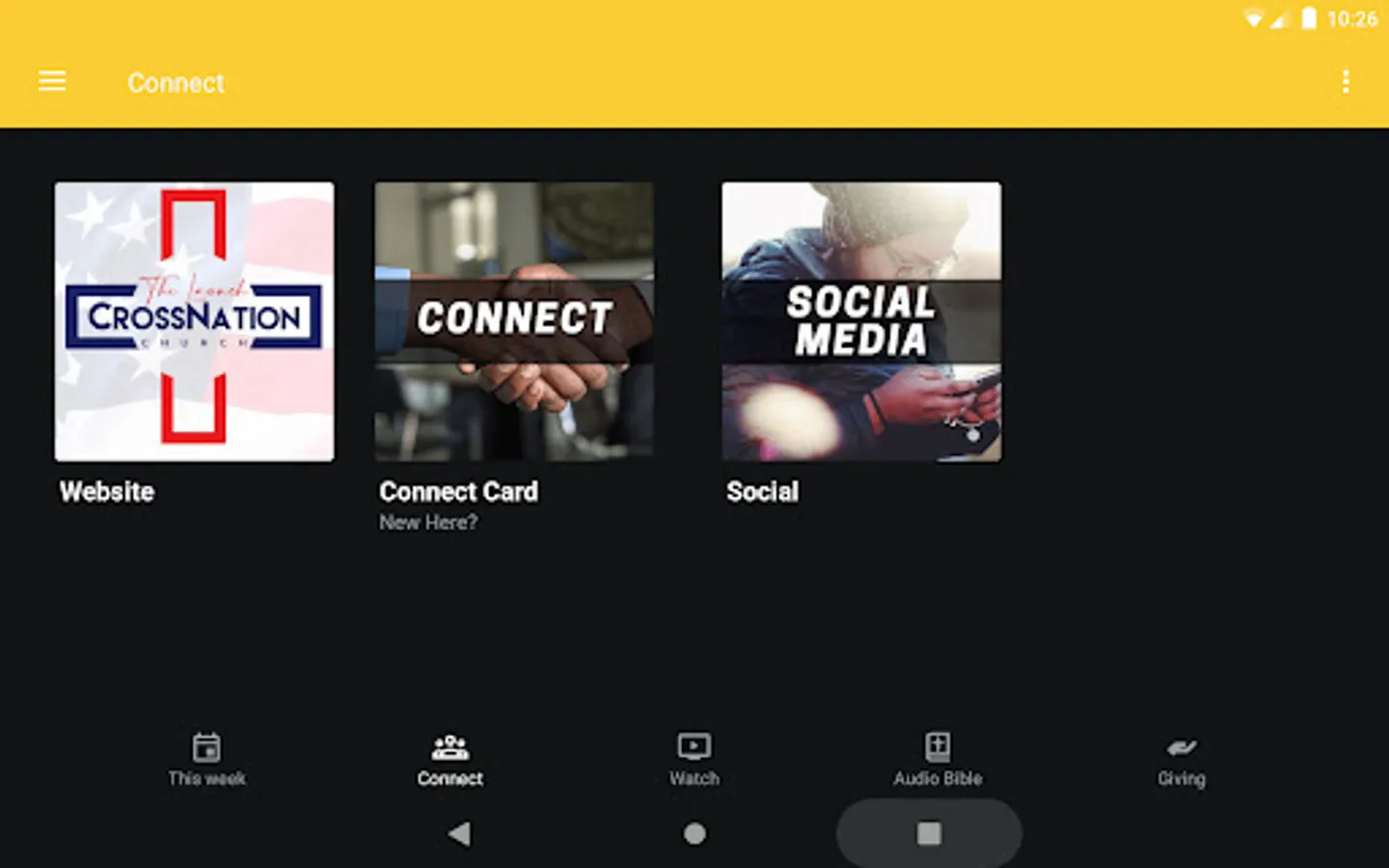 This app will help you stay connected with the day-to-day life of CrossNation Church. With this app you can: watch or listen to past messages; stay up to date with push notifications; share your favorite messages via Twitter, Facebook, or email; and download messages for offline listening.