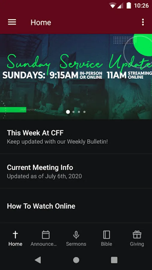 Don't miss out on a single event again! Catch up on old sermons, watch the new ones as they are live! Stay connected with your CFF Family!
