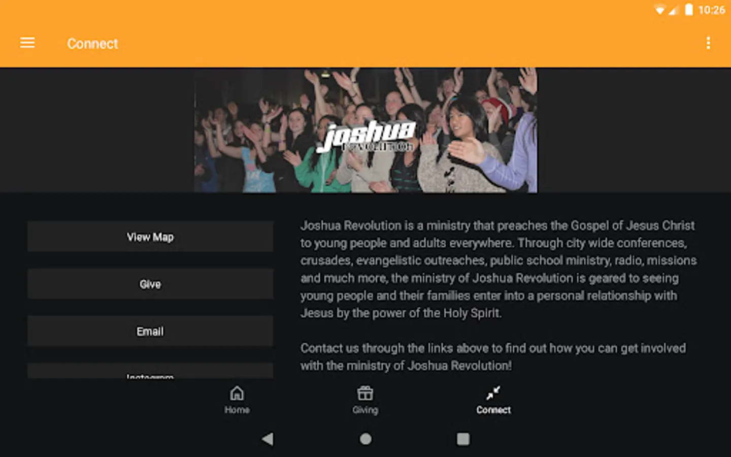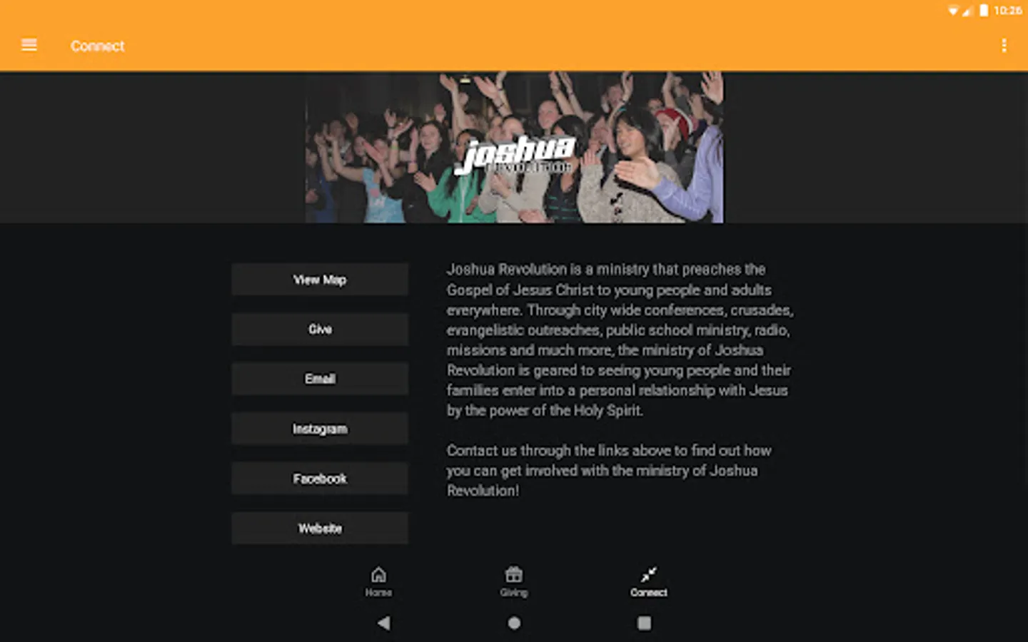This app provides information about Joshua Revolution, a Christian ministry serving the youth and families of WNY and beyond. Joshua Revolution puts on the Niagara Youth Conference, hosts radio programs, including CrossEyed Radio and Warriors Youth Radio, and sponsors other events throughout the year. In this app you will find event information, as well as resources to help you in your walk with Christ. Stay connected and be a part of Joshua Revolution wherever you go!