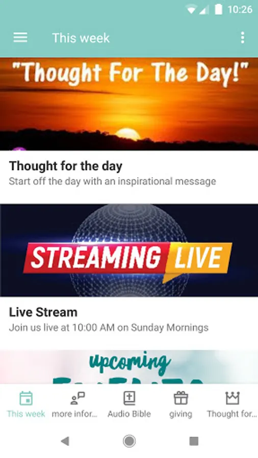 This app will help you stay connected with the day-to-day life of our church. With this app you can: watch or listen to past messages; stay up to date with push notifications; share your favorite messages via Facebook, or email; and download messages for offline listening. Enjoy past sermons, inspirational music, notices of opportunities to be involved and much more.