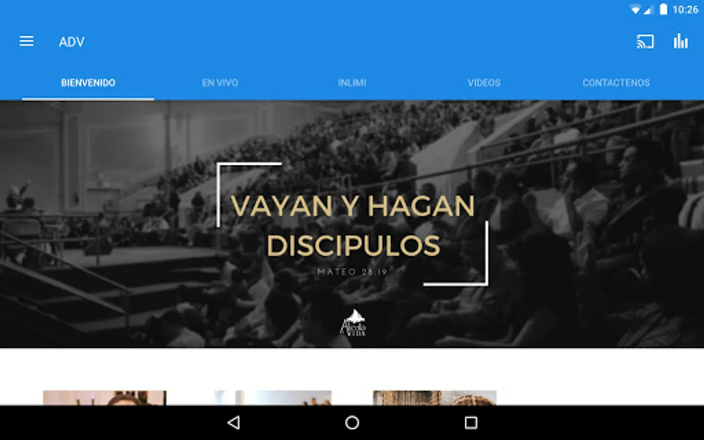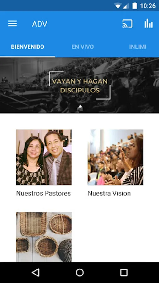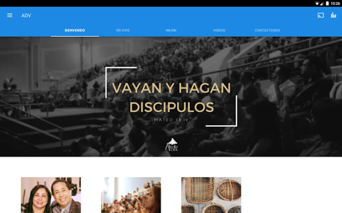 Aqui podrás conectarte con tu iglesia. Encontraras mensajes que te darán aliento. Si no puedes asistir a nuestra iglesia, puedes ver nuestros servic en vivo y dar tus diezmos y ofrendas.