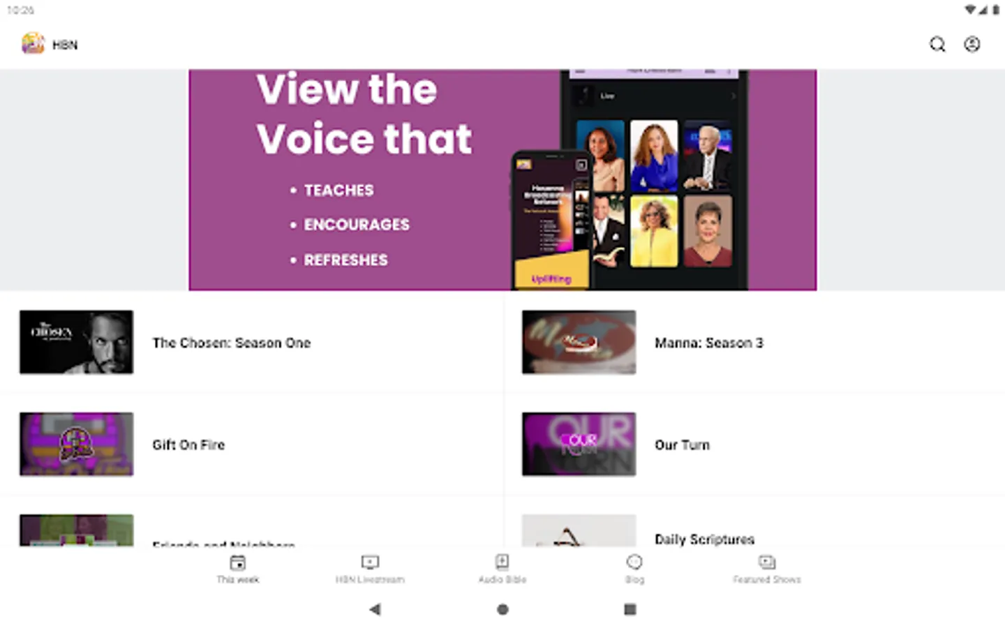 Hosanna Broadcasting Network Inc. (HBN TV) is the voice of Jesus Christ, delivering educational and inspirational content 24-hours a day. The HBN TV app offers followers of the Christian faith, a wide range of programming featuring global ministries, preaching, praise and worship, lifestyle series and talk shows that entertain, educate and inspire. Plus, stay up to date on what's new, now and next on the HBN Blog. Read the Bible on the go and much more! The HBN App is the perfect way to stay connected to the gospel community and learn daily about the teachings of Jesus Christ.