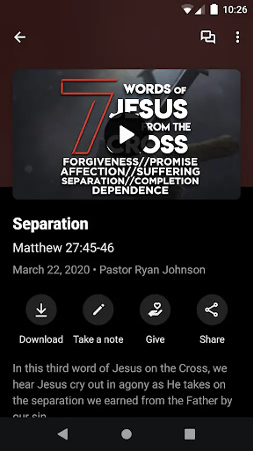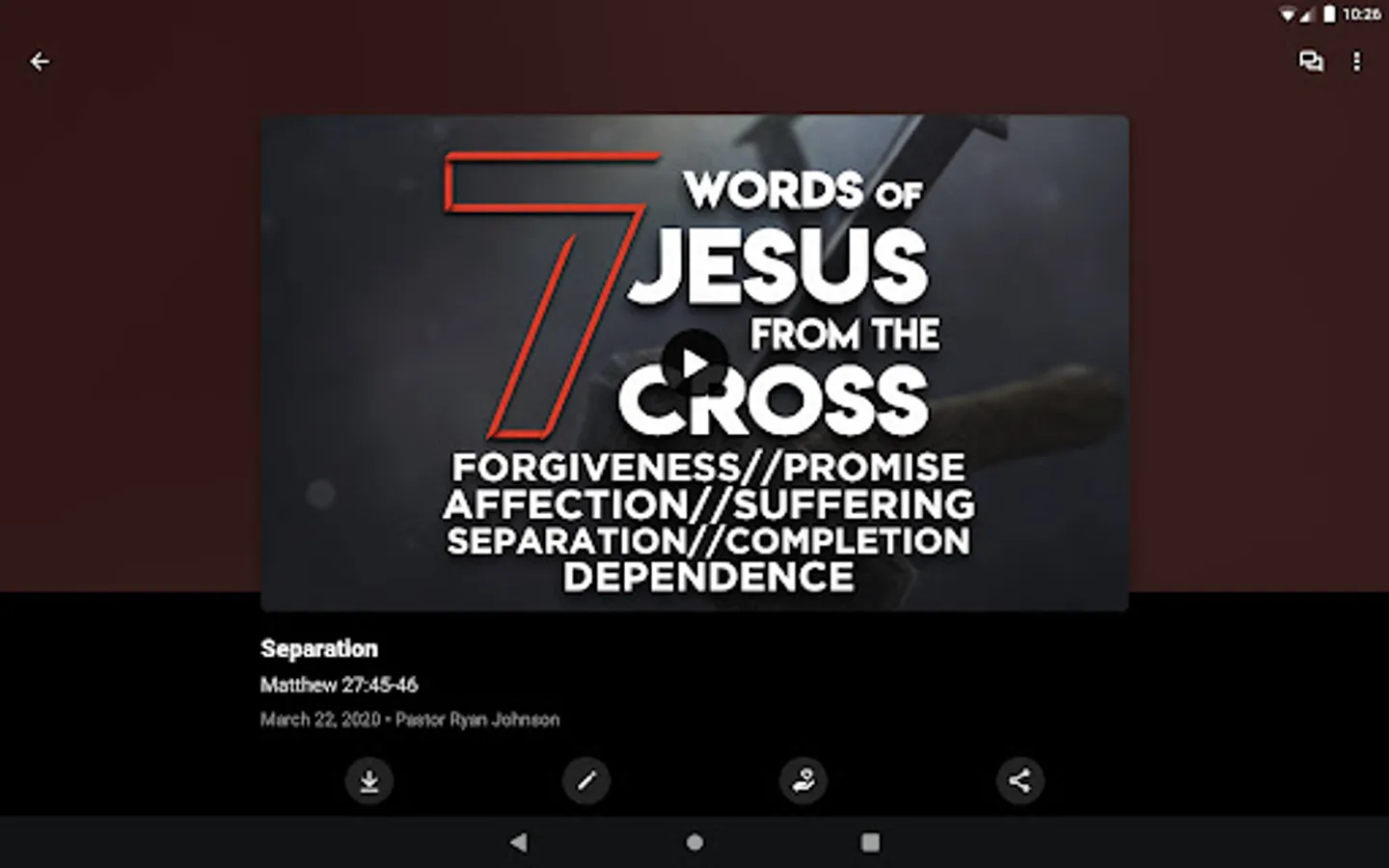 This app will help you stay connected with the day-to-day life of our church. With this app you can: watch or listen to past messages; stay up to date with push notifications; share your favorite messages via Twitter, Facebook, or email; and download messages for offline listening.