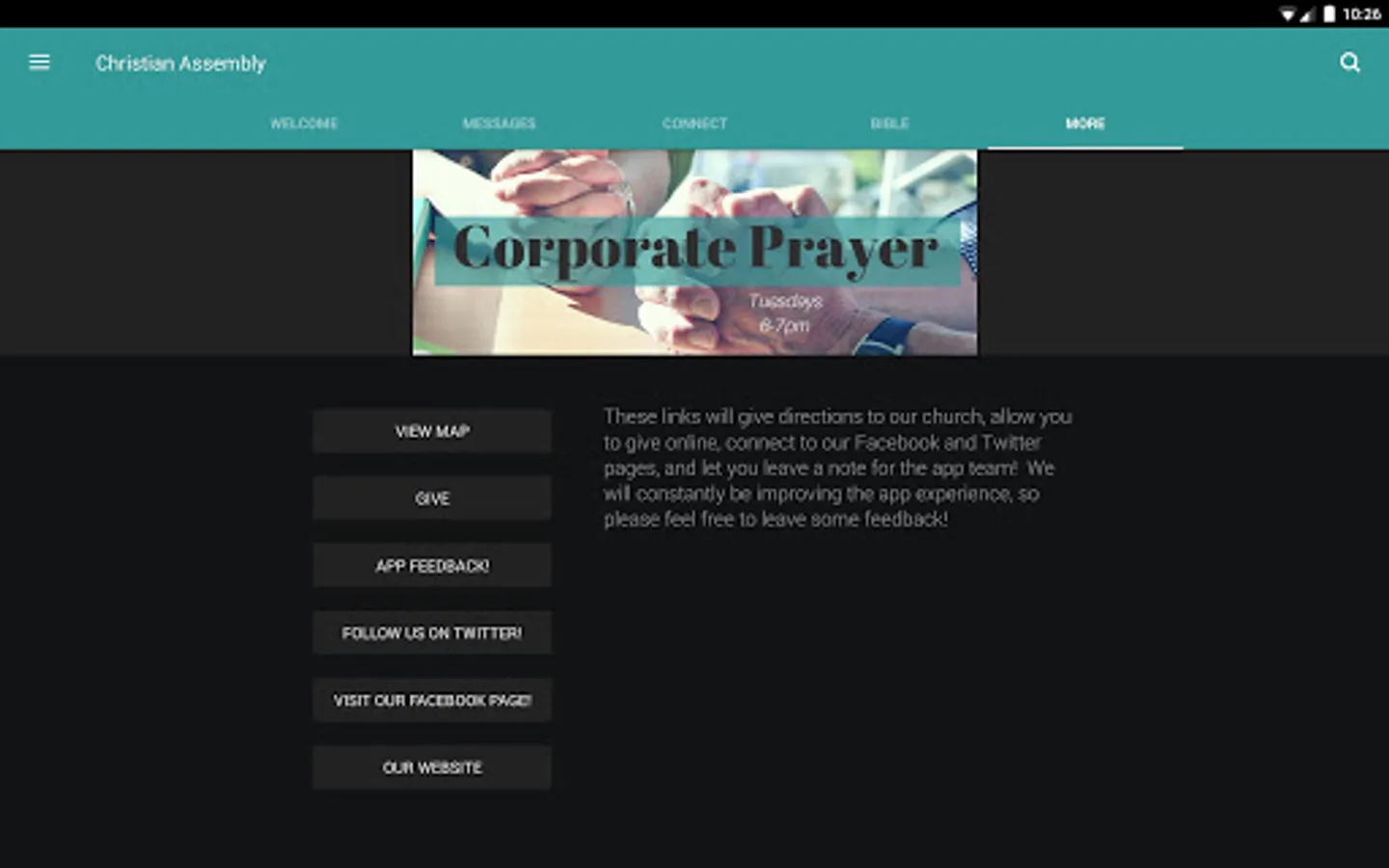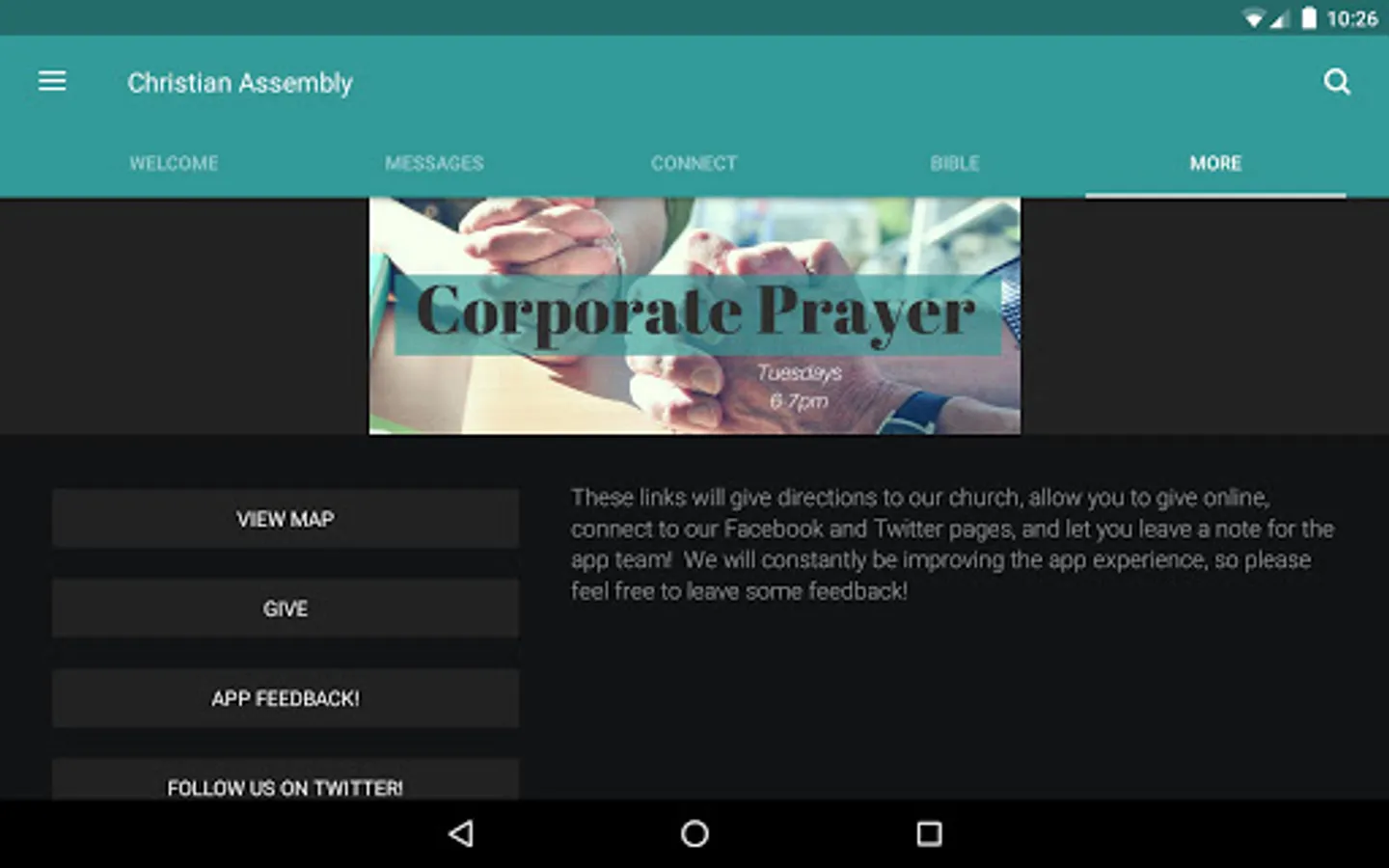 The Christian Assembly Church App was created with the Subsplash App Platform.