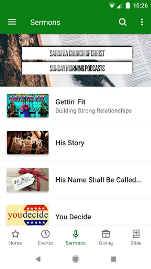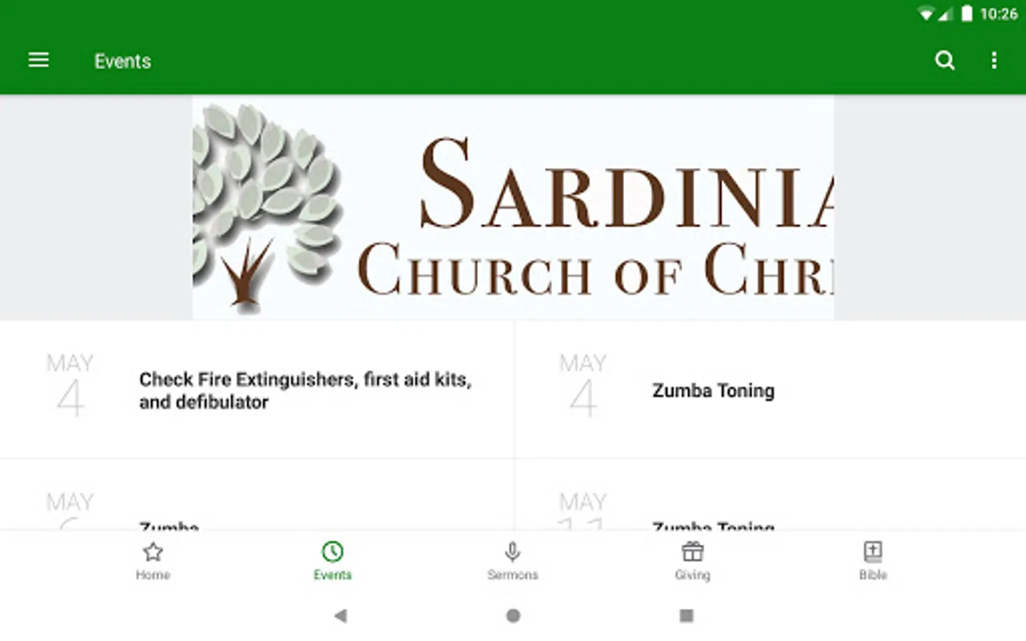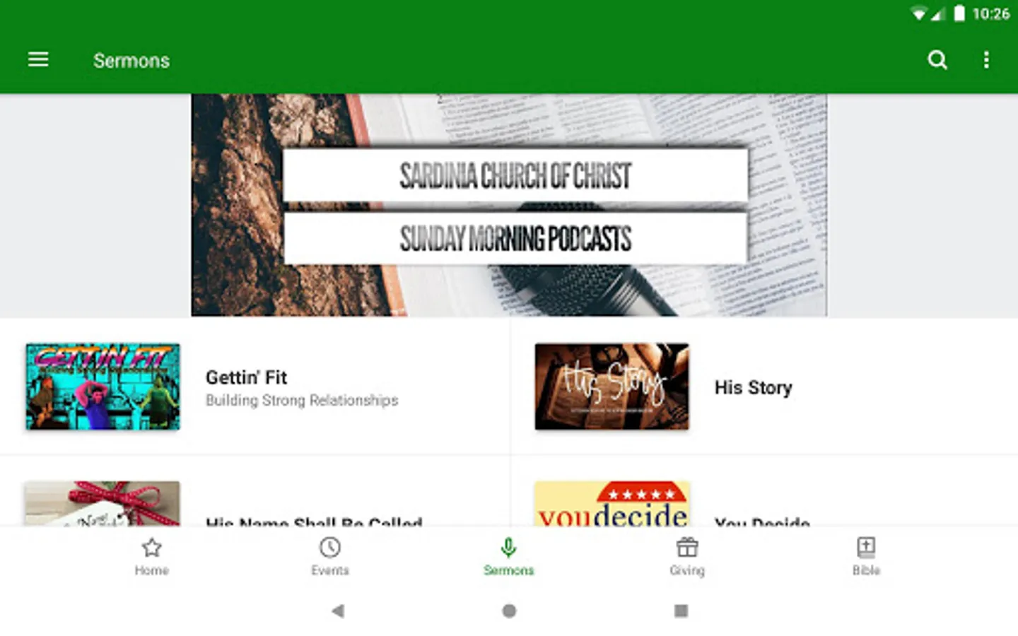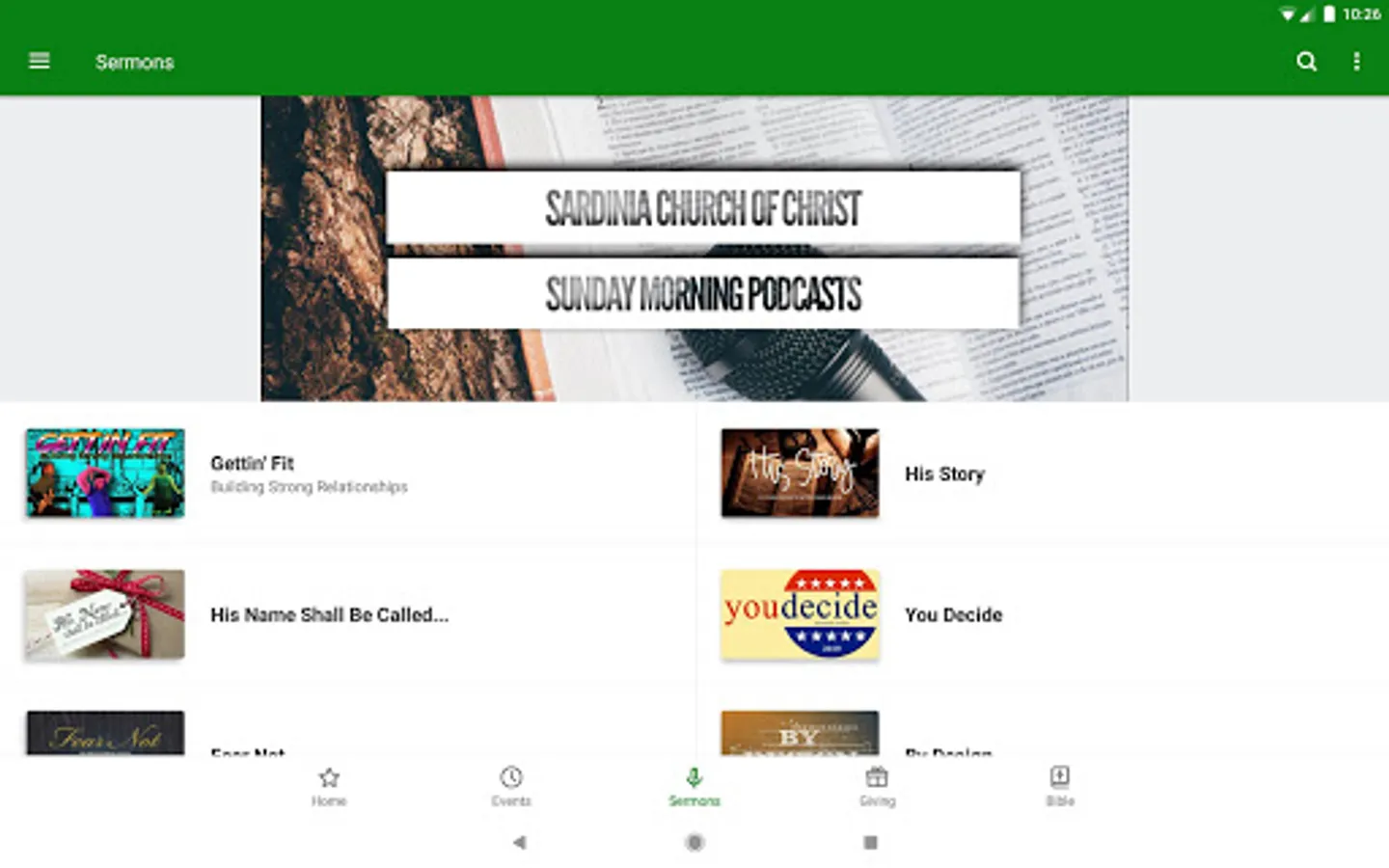 The Sardinia Church Of Christ app was developed with the Subsplash Platform.