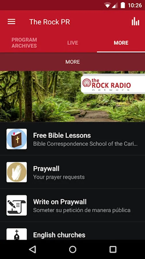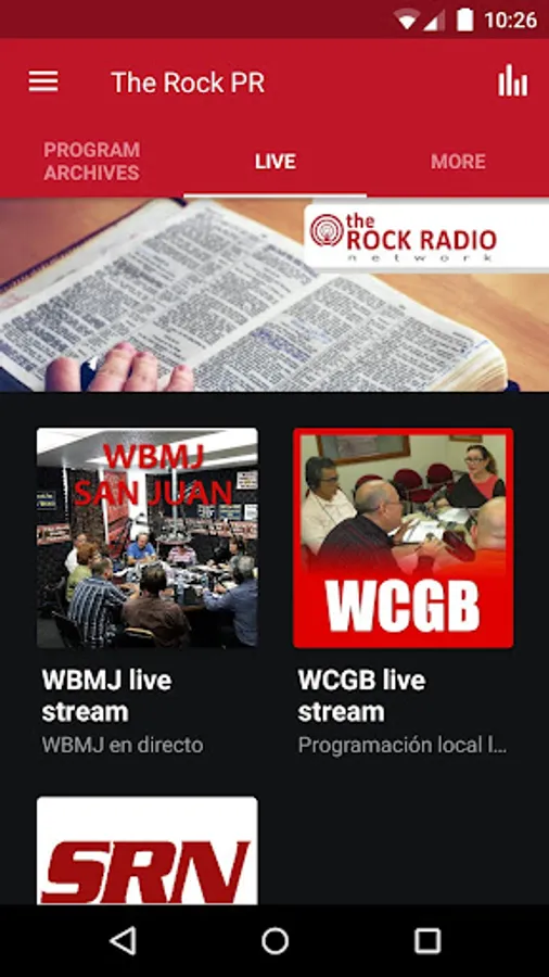 The official app of WBMJ (The Rock Radio Network), a bilingual, Bible teaching network based in San Juan, Puerto Rico. Listen to and download our locally produced programs in English and Spanish, enjoy our two live streams, follow our latest news, and join the Bible Correspondence School of the Caribbean for free Bible lessons.