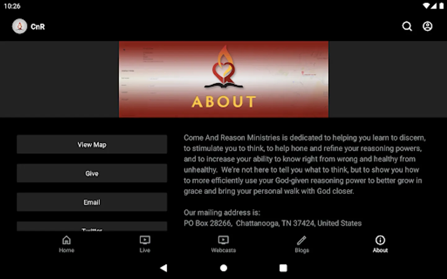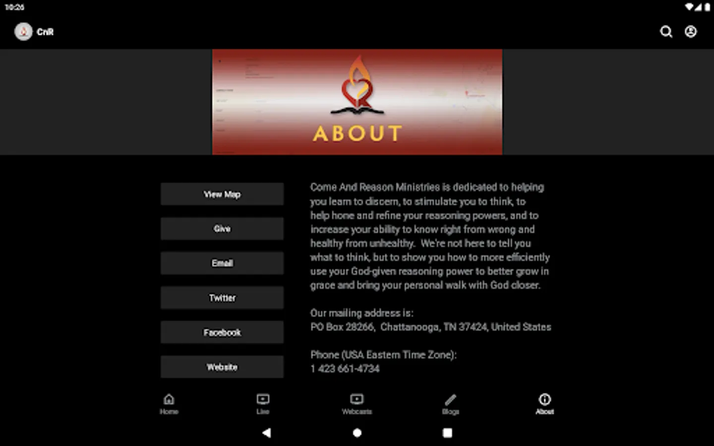 The Come And Reason Ministries App was created with the Subsplash App Platform.