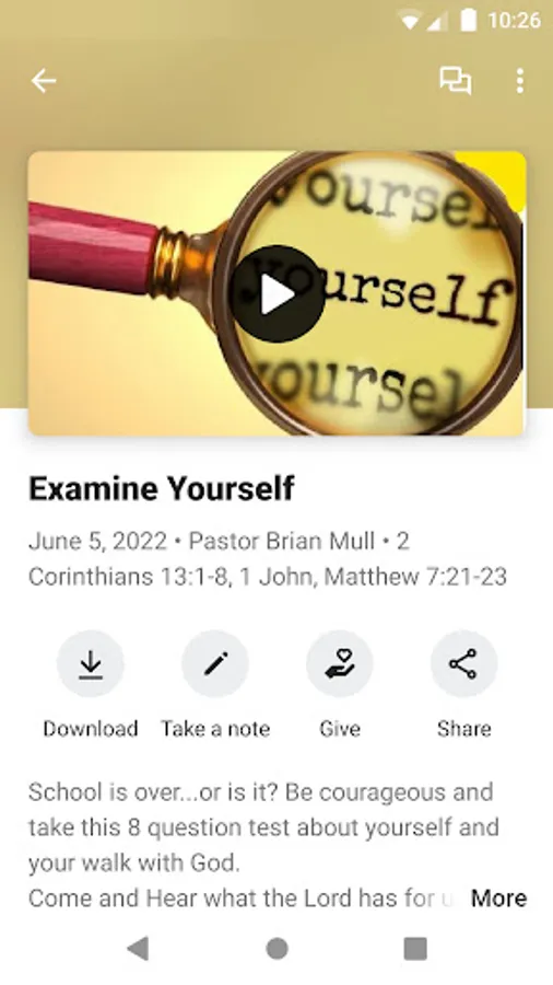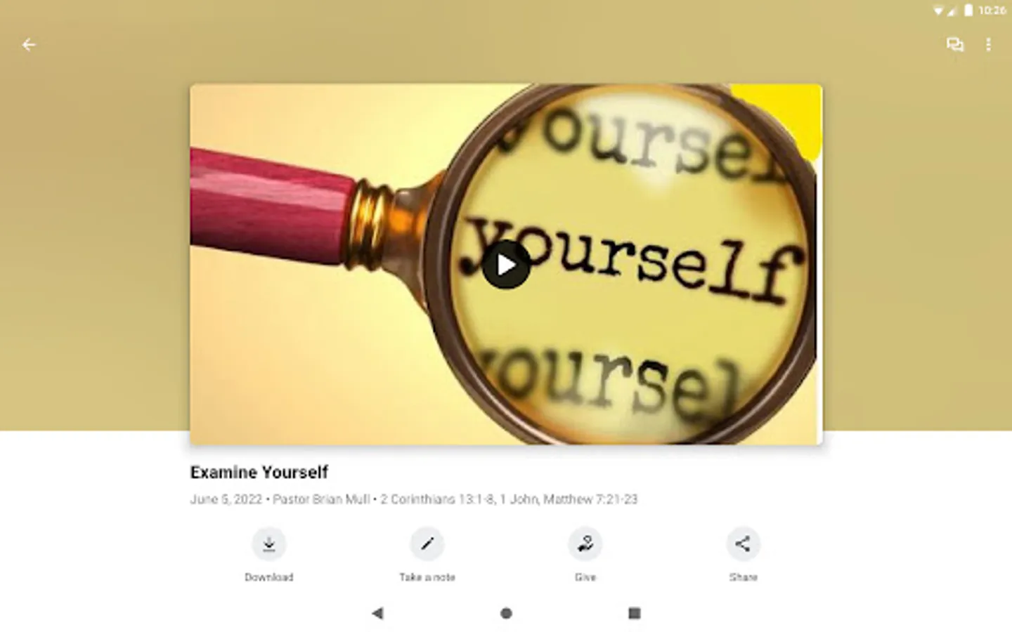 This app will help you stay connected with the day-to-day life of our church. With this app you can: watch or listen to past messages; stay up to date with current events, get important push notifications/reminders, and easily contribute thru your Giving.