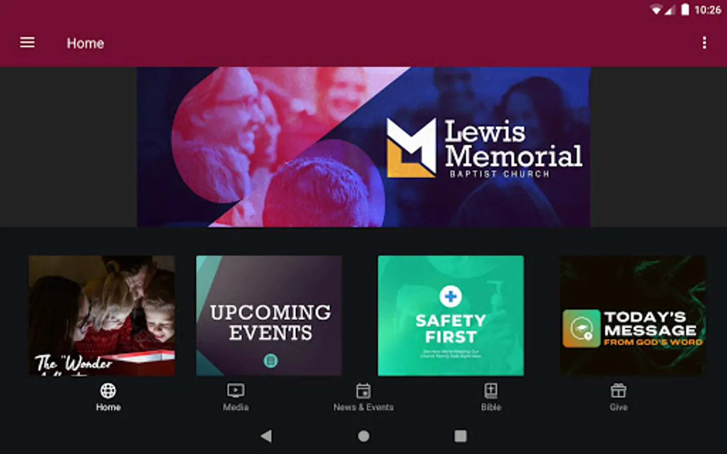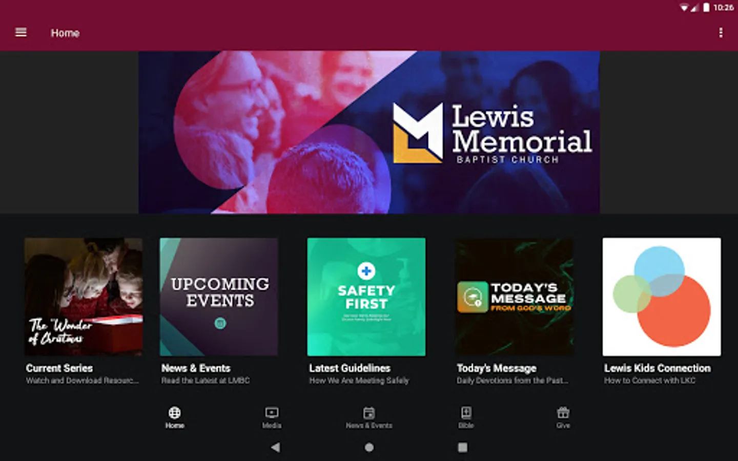The Lewis Memorial Baptist Church App was created with the Subsplash App Platform.