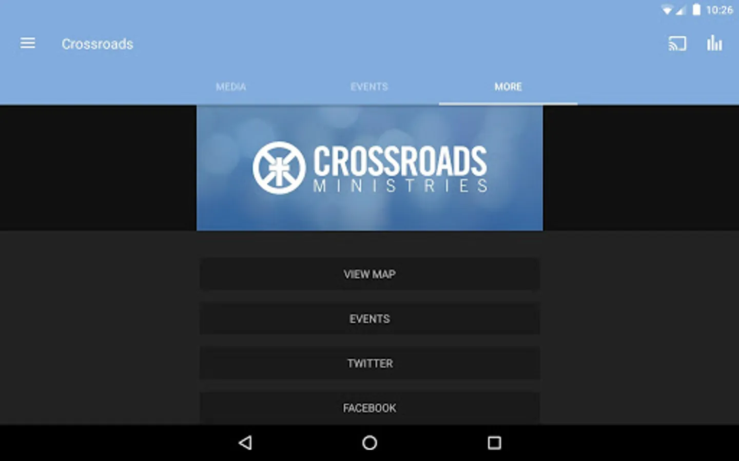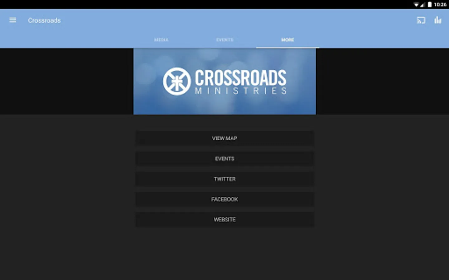 The Crossroads Ministries App was created with the Subsplash App Platform.