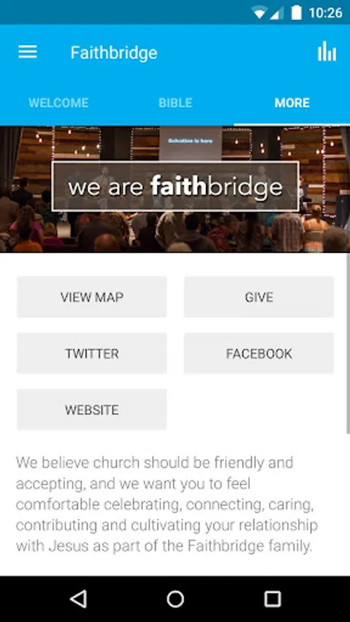 The Faithbridge Church App was created with the Subsplash App Platform.
