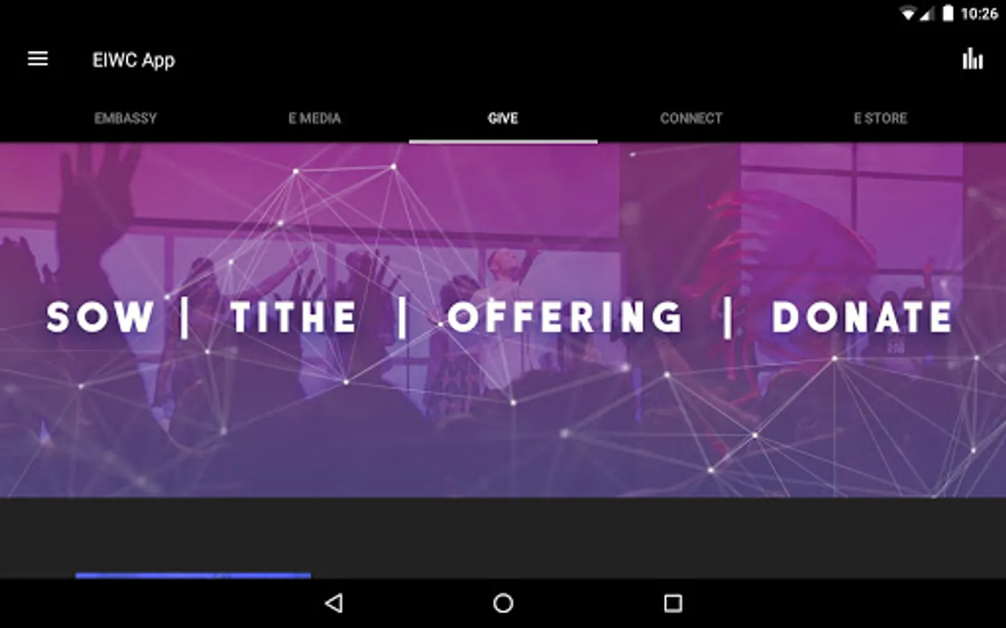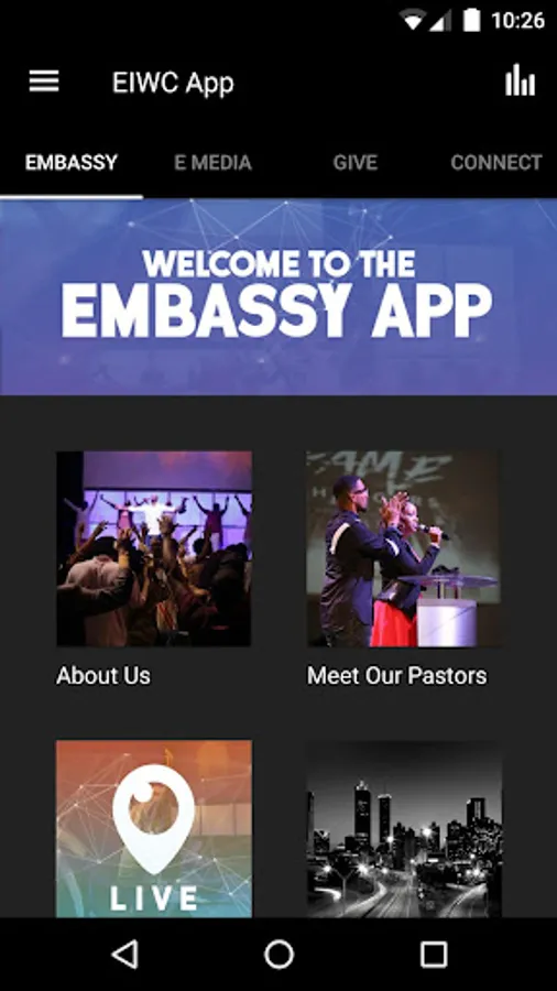 The Embassy Church App is here! Now you can have the Embassy Experience in the palm of your hands and never miss an event or supernatural moments that is known as The Experience. The Embassy App features content from the powerful leadership of Embassy International Worship Center, Lead by our Senior Pastor, Apostle Bryan Meadows. With the Embassy App, you can now be connected to powerful resources consist of sermons, diagrams, and events of Embassy International Worship Center in Atlanta, Ga.