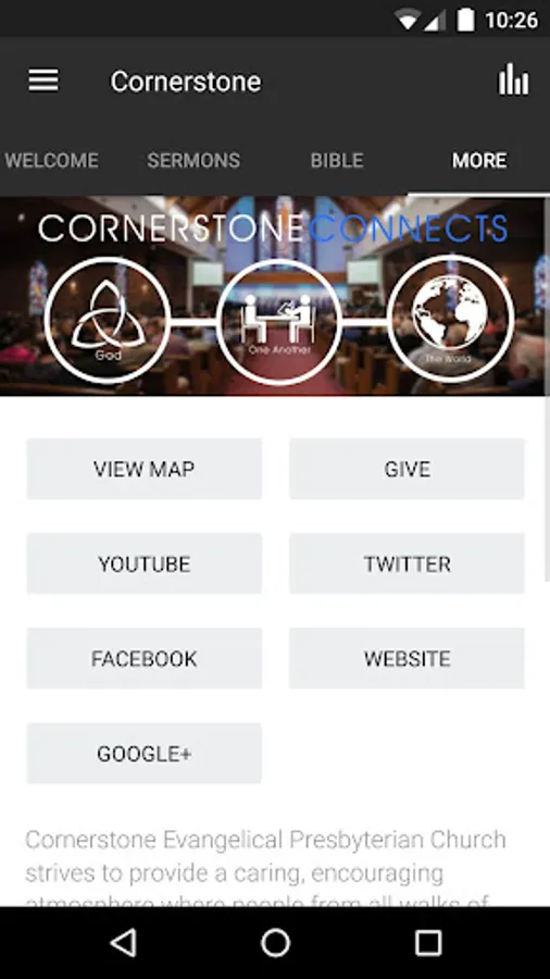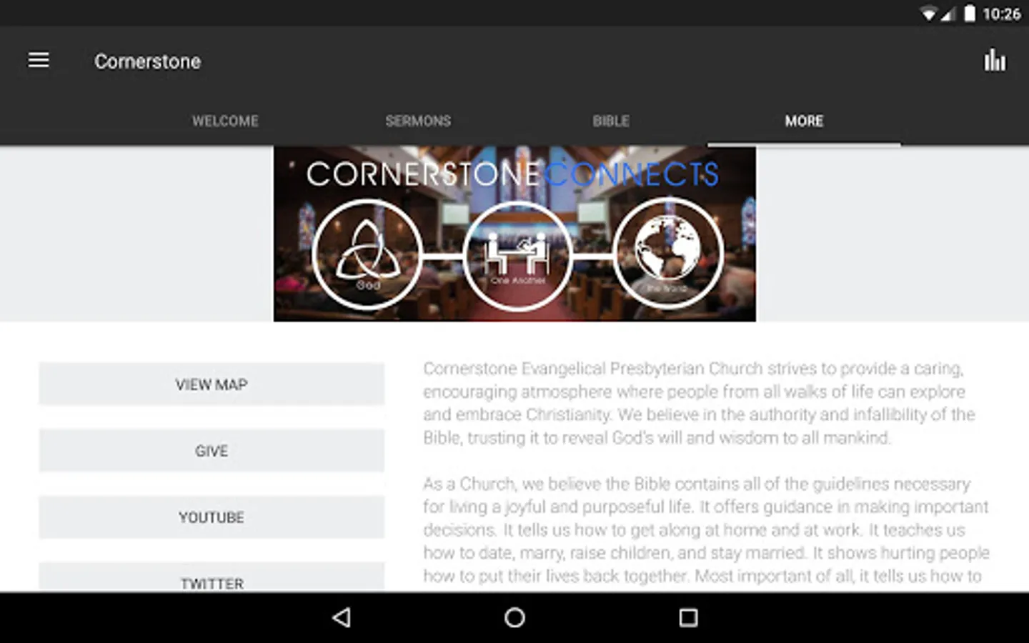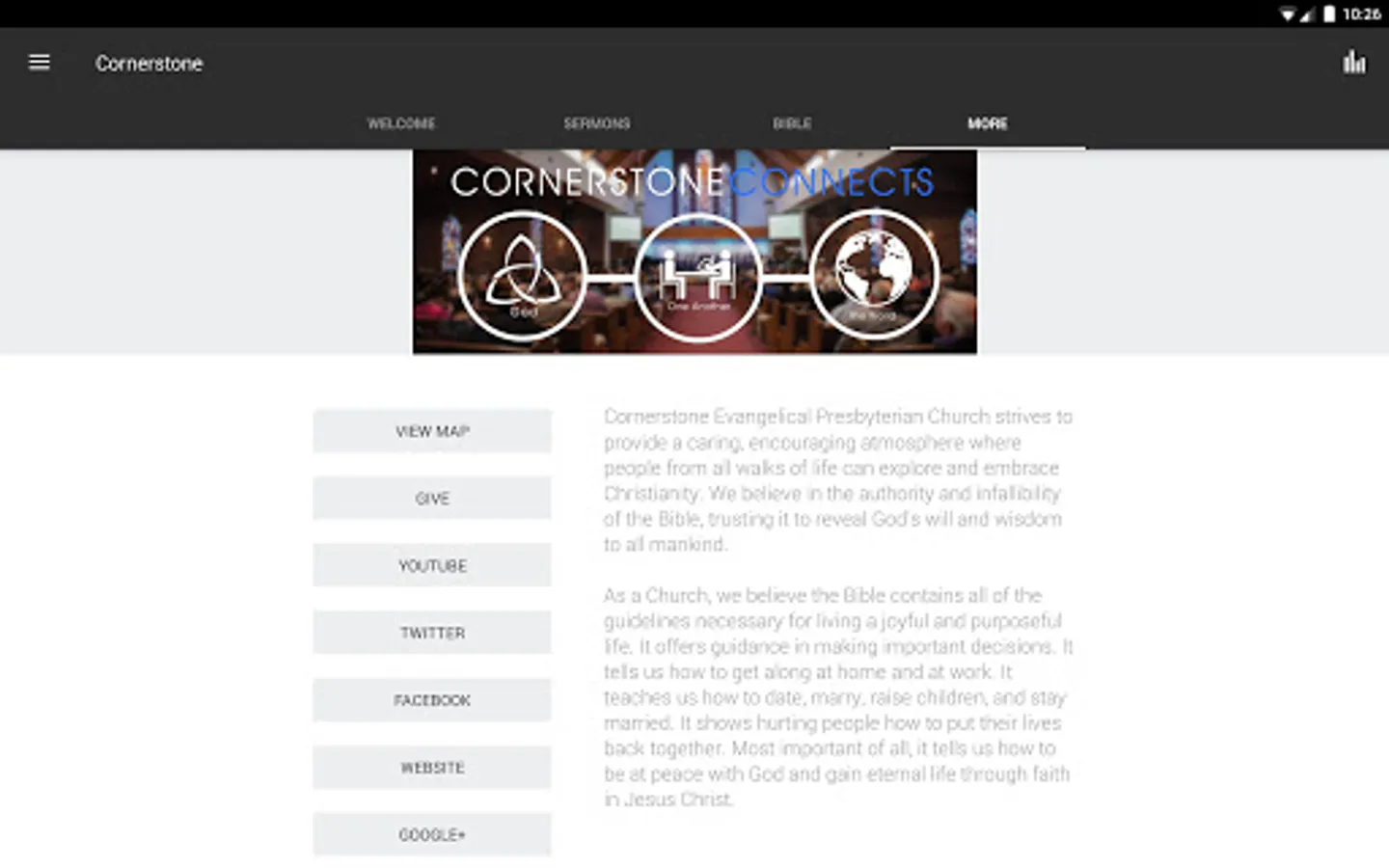 The Cornerstone EPC App was created with the Subsplash App Platform.