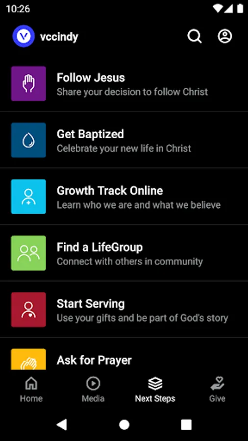 • Find your next step, including following Jesus, baptism, small groups, and more!