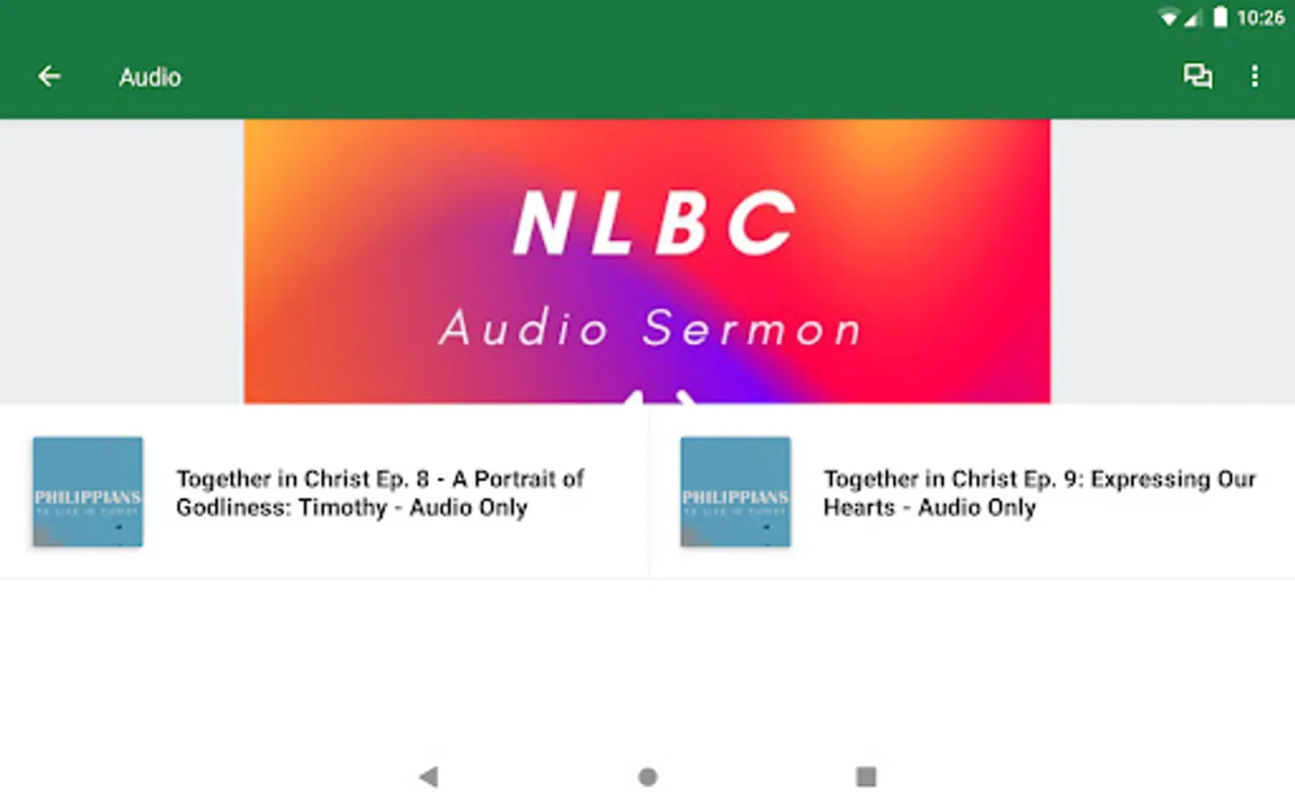 This app will help you stay connected with the day-to-day life of NLBC church. With this app you can: watch or listen to past messages; stay up to date with push notifications; access mobile giving; share your favorite messages via Twitter, Facebook, or email; and download messages for offline listening.