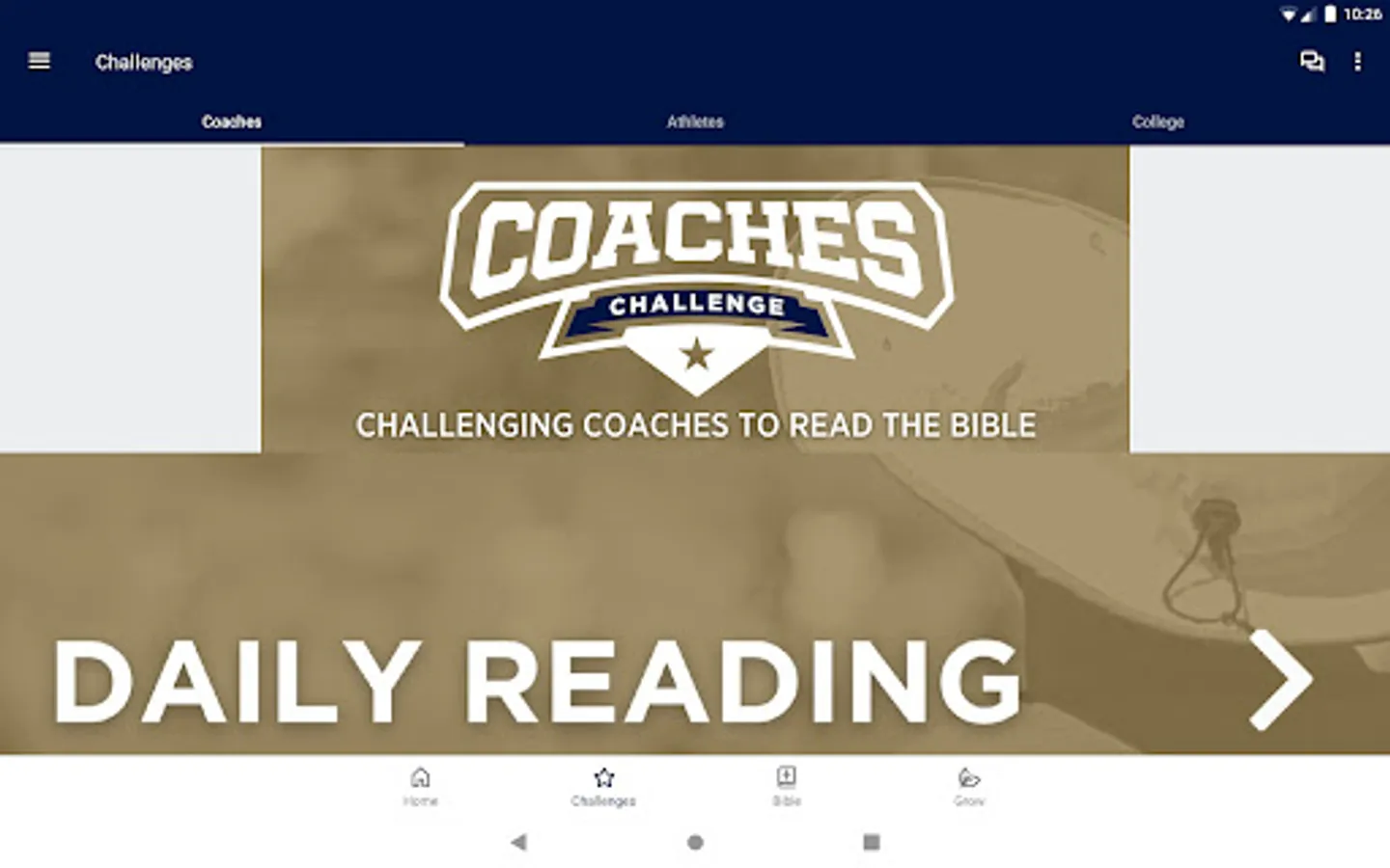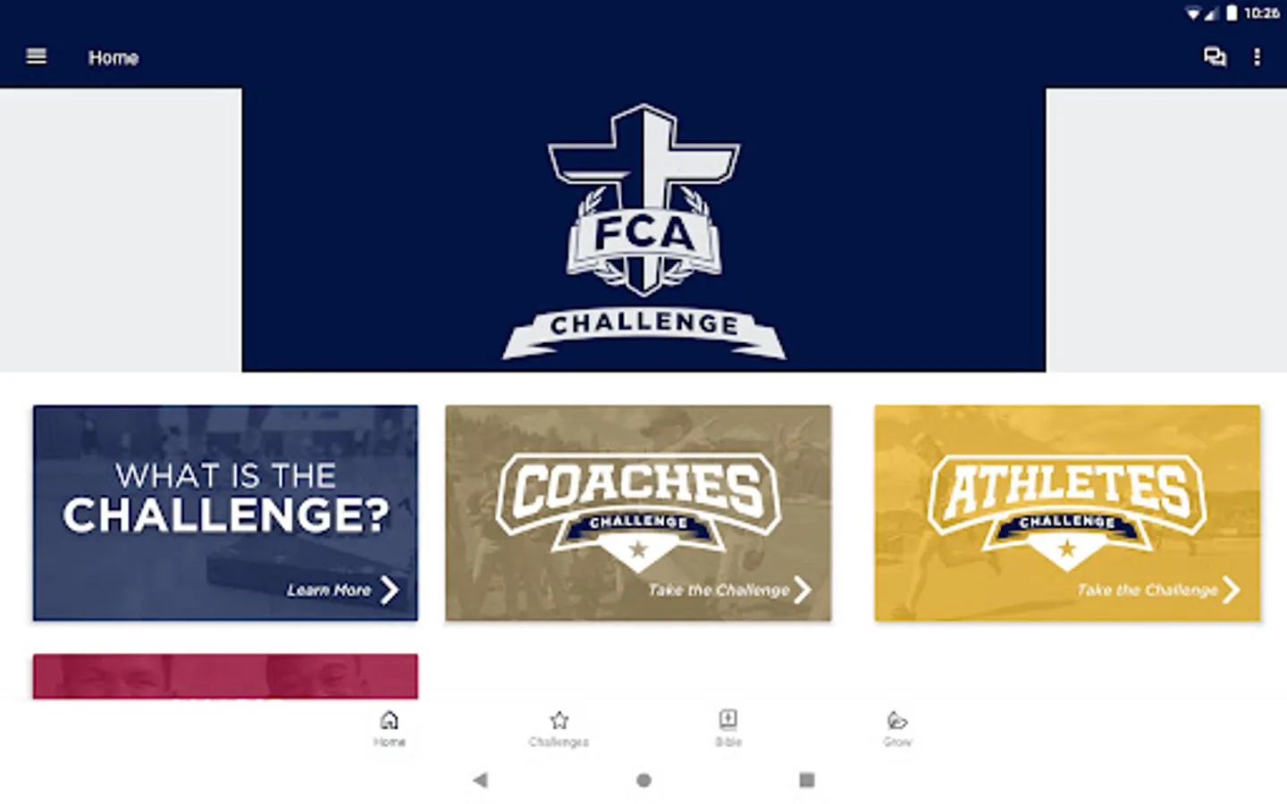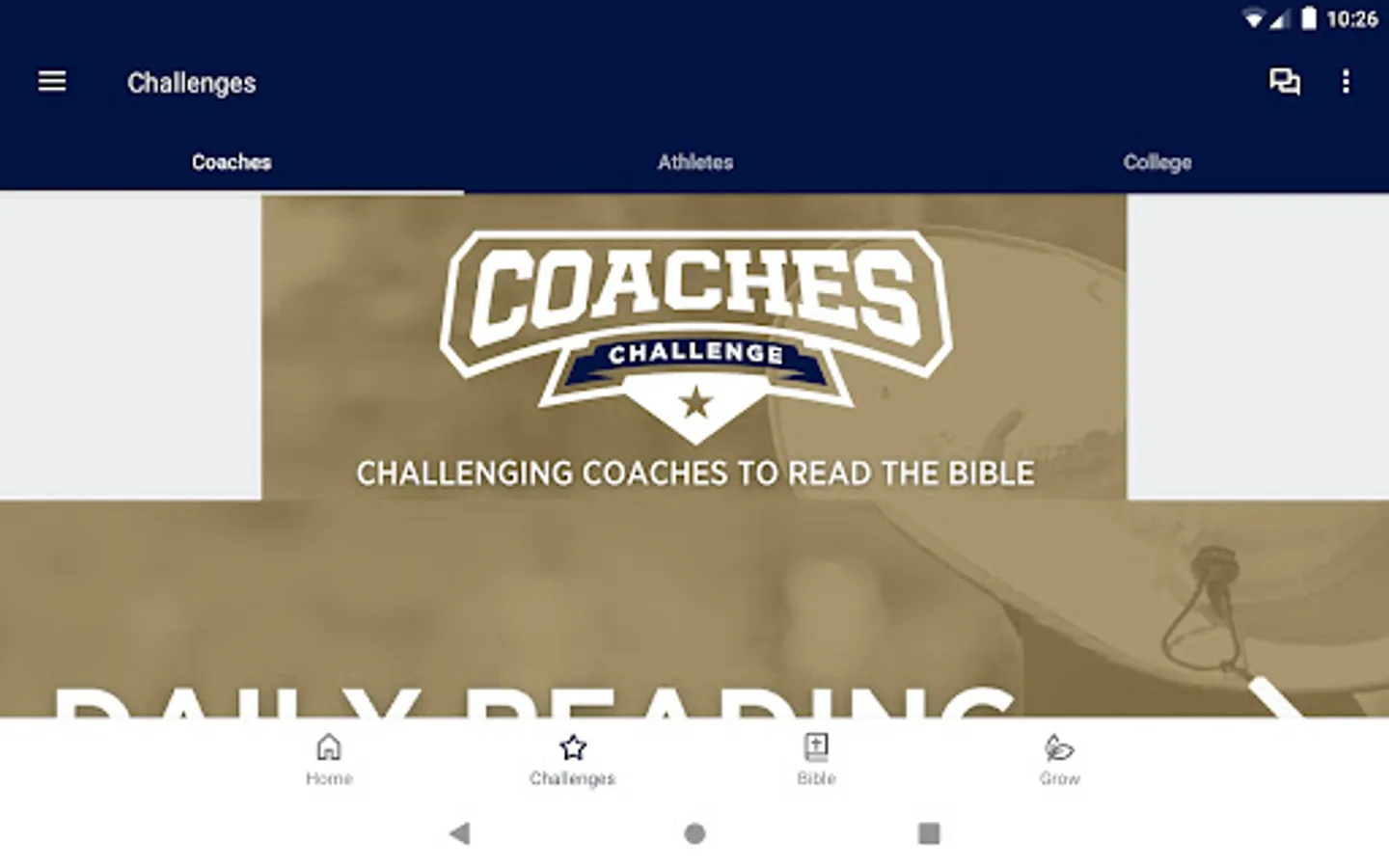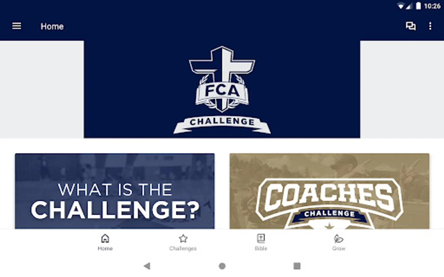 Up for the Challenge? If you're a coach or athlete desiring to grow in your faith, the FCA Challenge app is for you. Developed by the Fellowship of Christian Athletes (FCA), this Bible-reading challenge equips you to read God's Word daily.