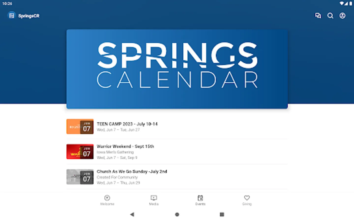 The Springs CR app has lots of live and archived media, messages and worship services. You can also easily find opportunities to connect with the Springs Community, Interact with others during our streaming worship services and so much more!