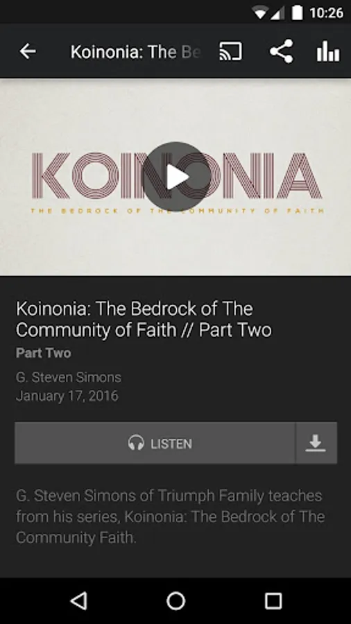 This app features the video/audio teachings of G. Steven Simons, the founder of Triumph In Truth Ministries, as well as interactive tools (connect forms, online giving, scheduled events, radio access, etc.) to help our congregation of belief build unity and continuity of vision on a global scale!