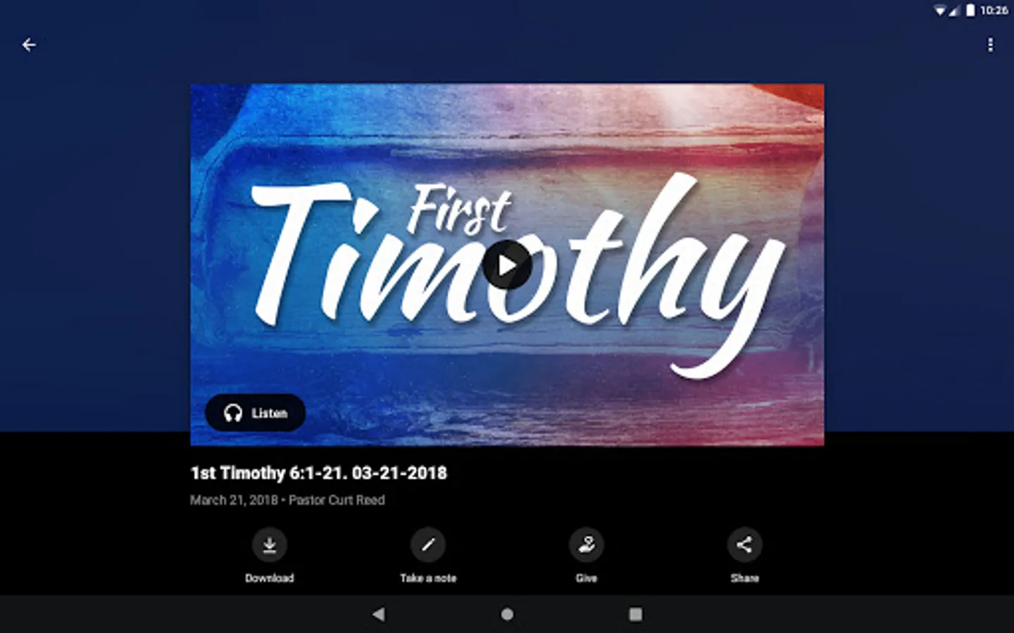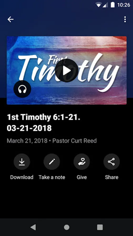 This app will help you stay connected with the day-to-day life of our church. With this app you can: watch or listen to past messages; stay up to date with push notifications; share your favorite messages via Twitter, Facebook, or email; and download messages for offline listening.