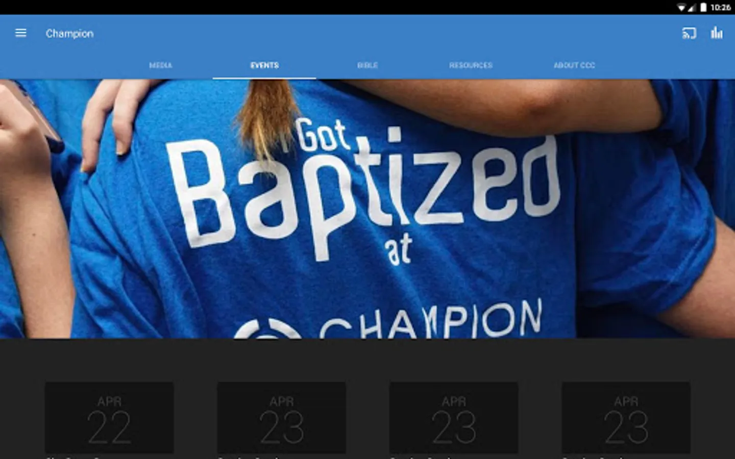 The Office Champion Christian Center App featuring content from Pastors Nathan and Joie Miller.