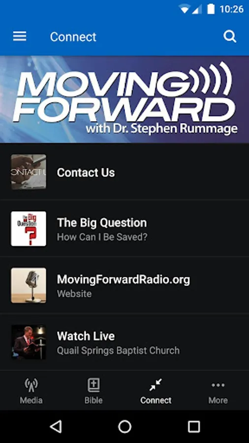 The Moving Forward with Dr. Stephen Rummage app was developed with the Subsplash App Platform.