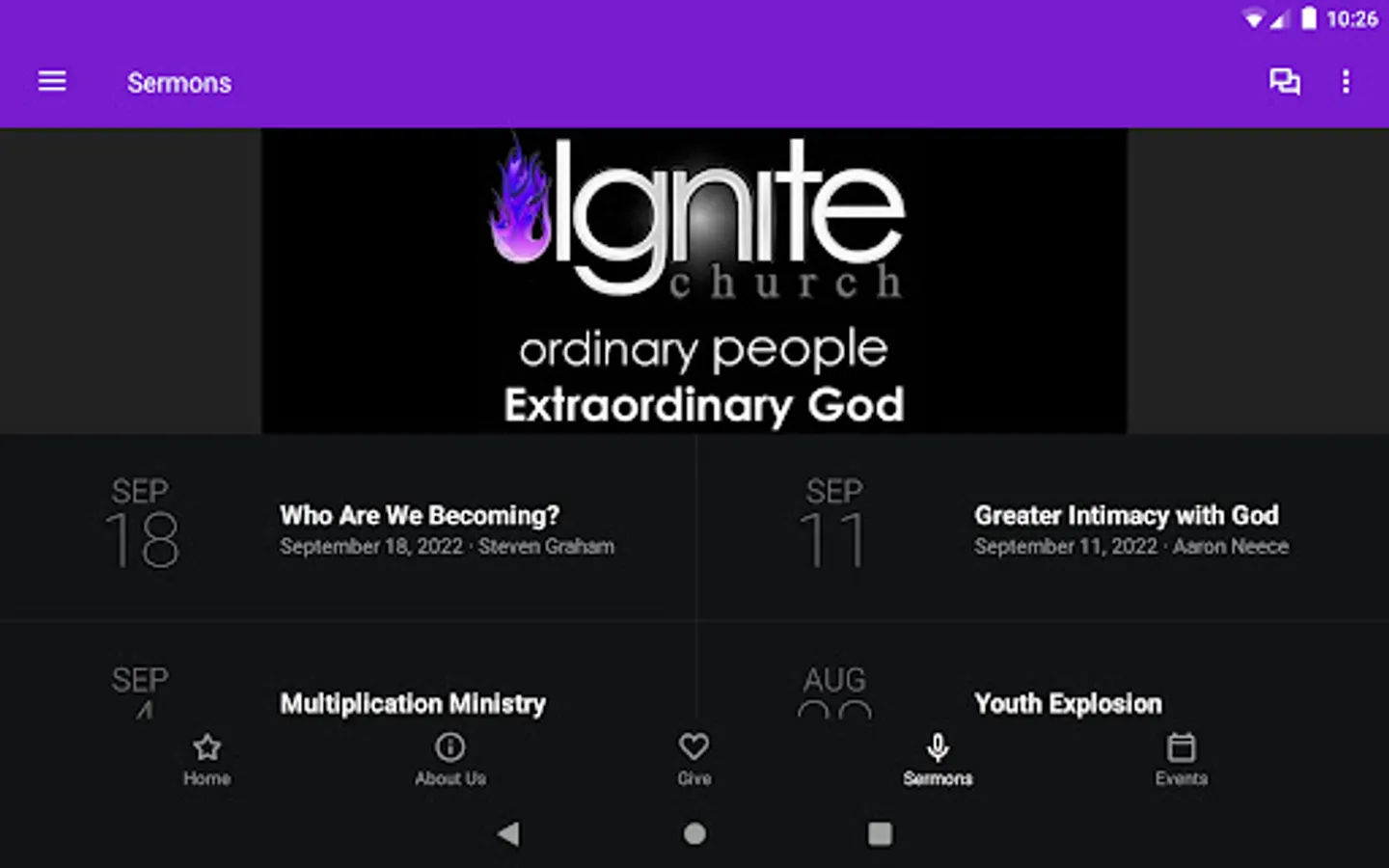 The Ignite MB App was created with the Subsplash App Platform.