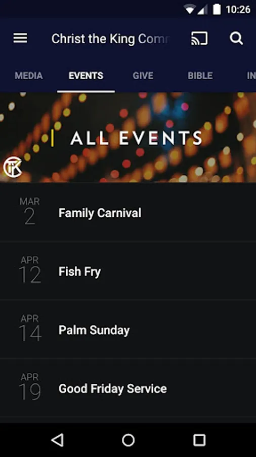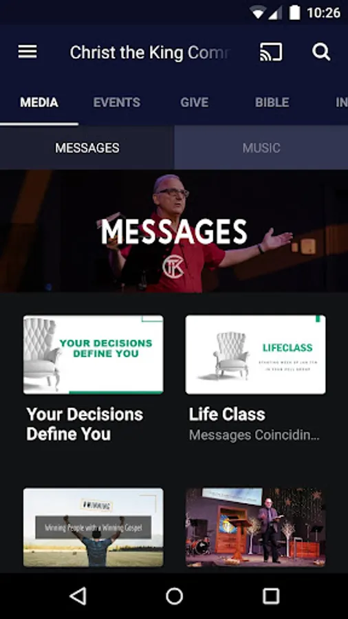 The official app of Christ the King Community Church in St. Louis MO. Yeah, you want it. Via the app, you can listen and watch our most recent messages, hear all of the music that we have released, find out about what's going on, donate, and in general just have an amazing app on your phone to show your friends....yes, it's that good. ;)