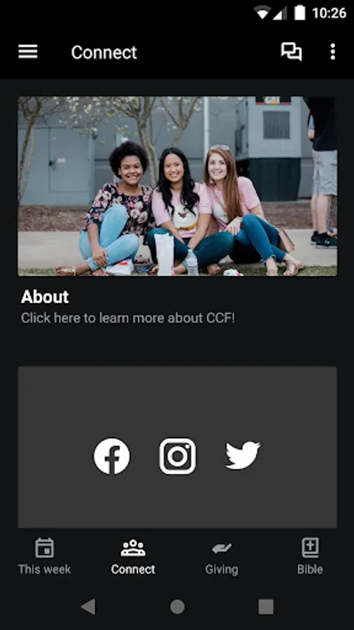 This app will help you stay connected with the day-to-day life of our church. With this app you can: watch or listen to past messages; stay up to date with push notifications; share your favorite messages via Twitter, Facebook, or email; and download messages for offline listening.