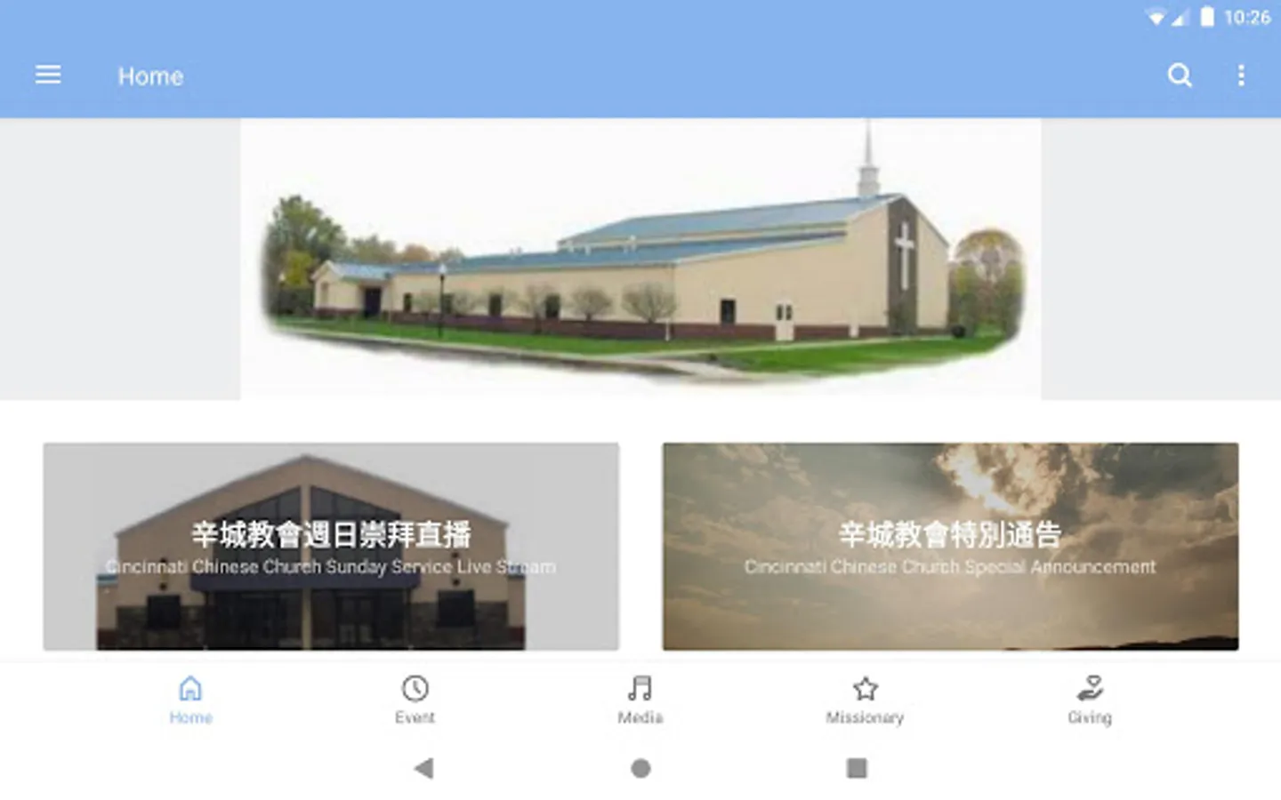 Also offer a convenient tool to pull people closer to the lord Jesus and father God through Cincinnati Chinese church's message. 歡迎您來到辛城教會APP,盼望您能仔細的瀏灠,得到您想要的資料。辛城教會是辛城華人屬靈的大家庭,除了提供完整的教會生活之外,我們真切的關心人靈魂的需要,希望每個人都得到基督的愛和生命。如果你有任何建議,請與我們連繫,願神祝福您並以祂聖靈引導您人生的每一步。請來訪問我們的教會 。
