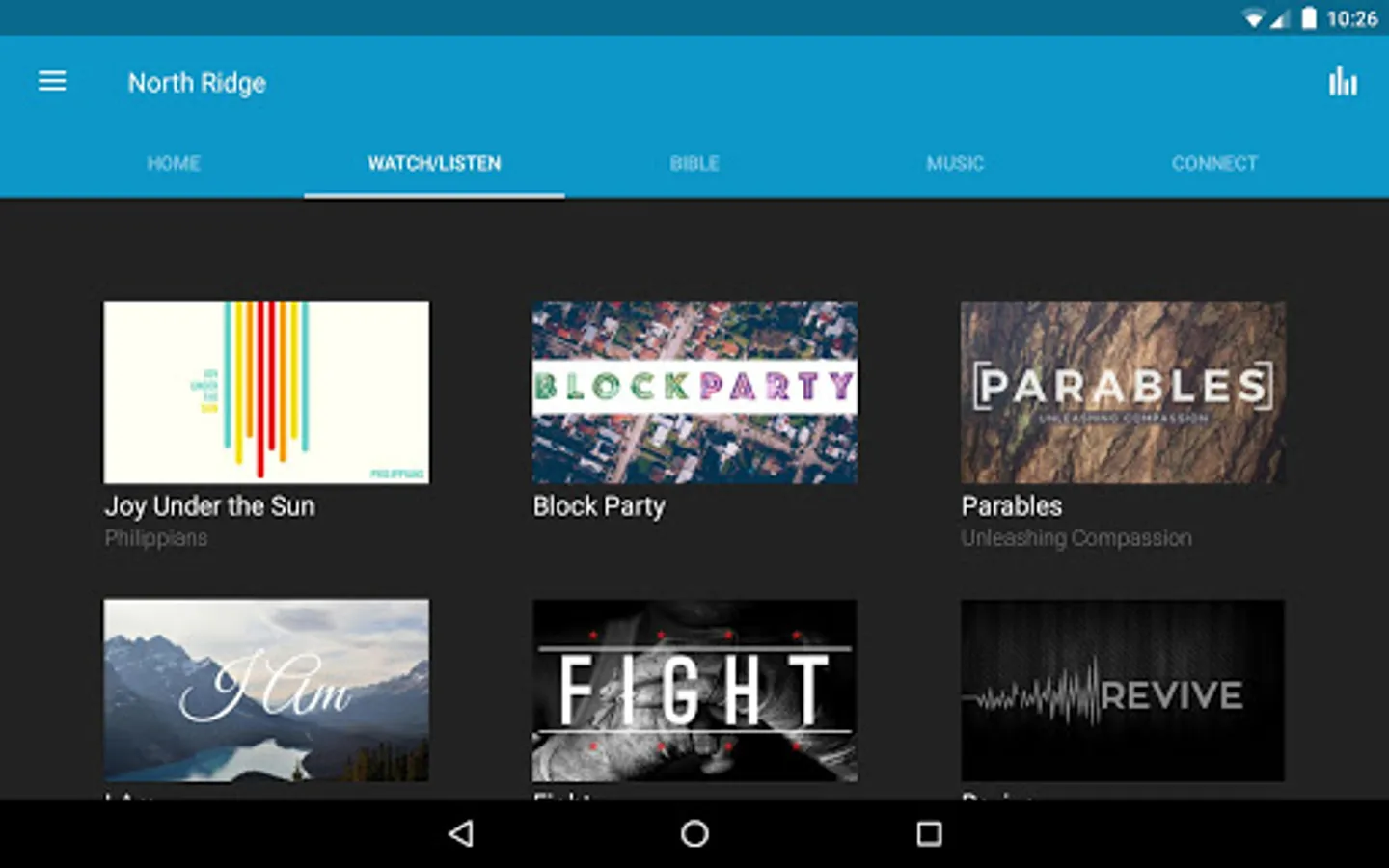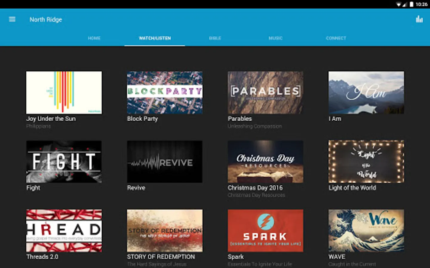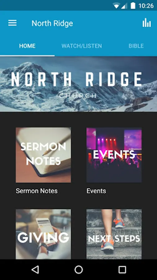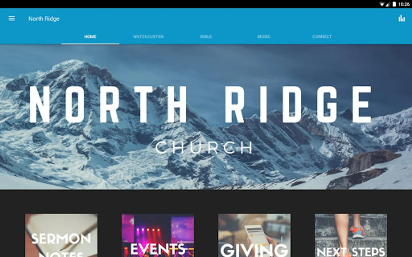 The North Ridge Church app was developed with the Subsplash App Platform.