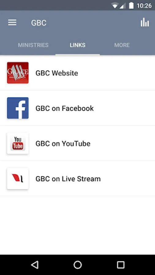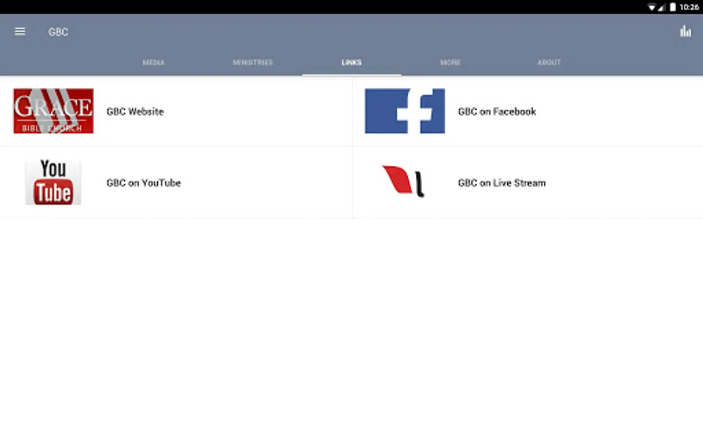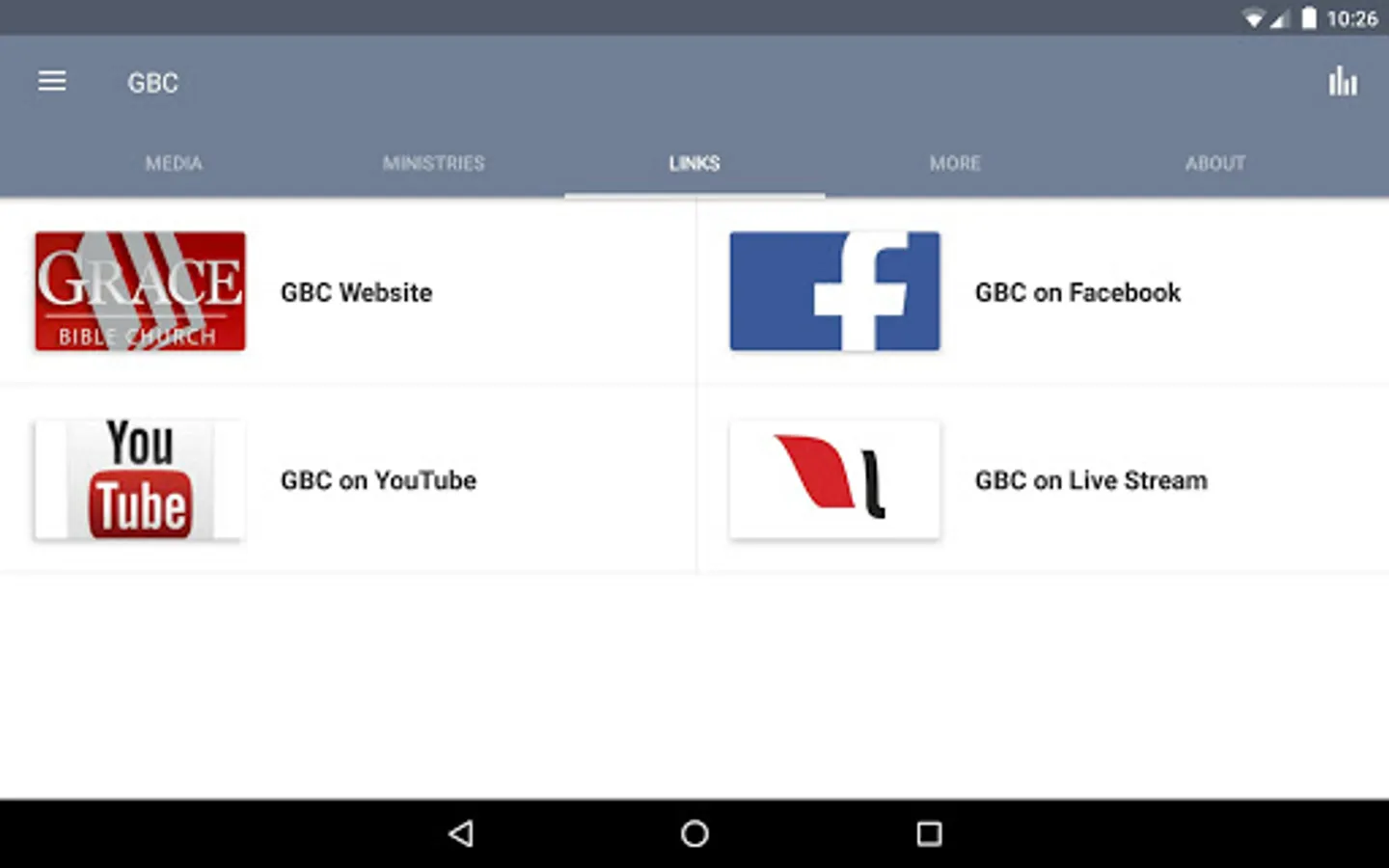 - Easily connect to our Grace Bible Church website, Live Stream link, facebook, and YouTube