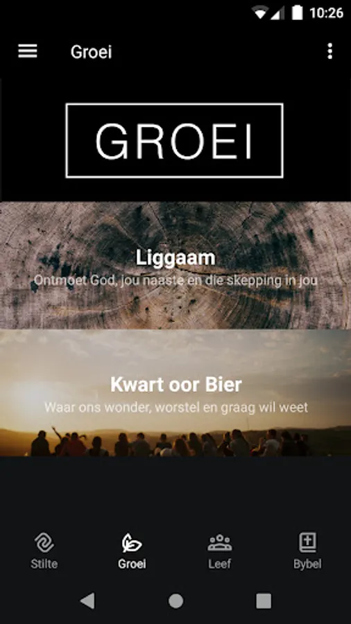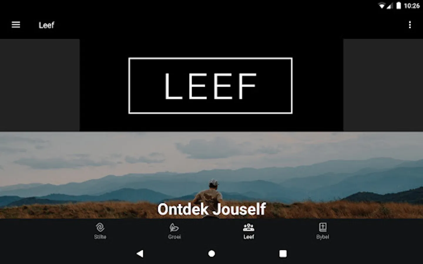 The Leef app is a space where you can practice your faith-rhythms. It's an Afrikaans app that will facilitate a diversity of spiritual practices to help you grow in your faith through prayers, meditations and reflections. Here we learn about ourselves, God, people and the earth. This app is created by Durbanville Gemeente.