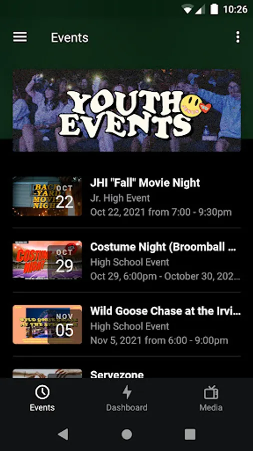 The Youth App gives our youth students & their parents access to register & find details for our event information, listen & share archived message, and more!