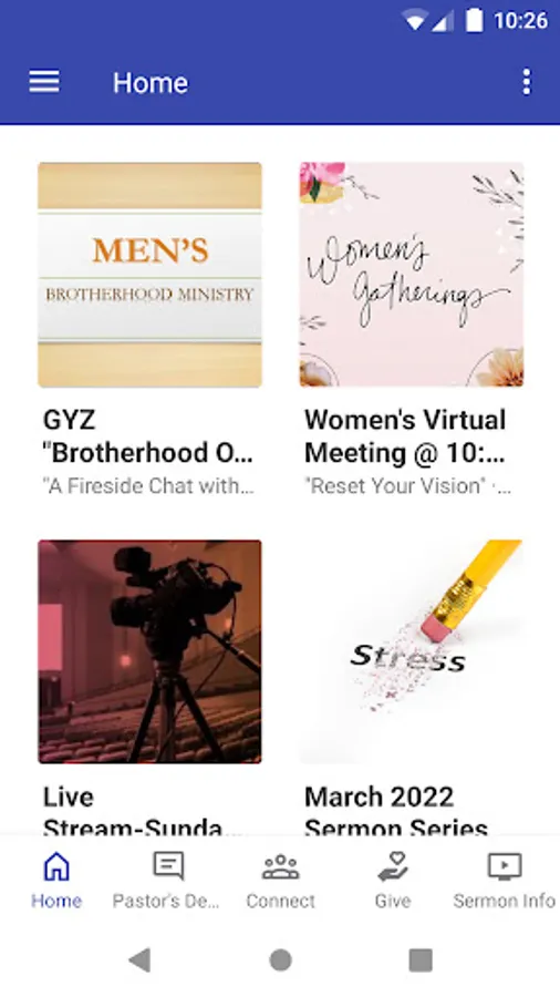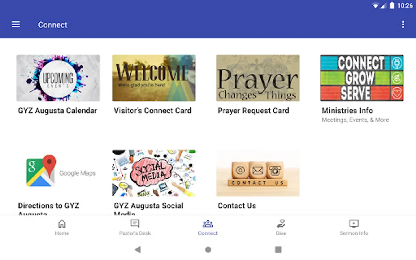 • Connect with Christian Education, Men, Women, Youth, Marriage and Singles Ministries with access to all upcoming meeting and events info.