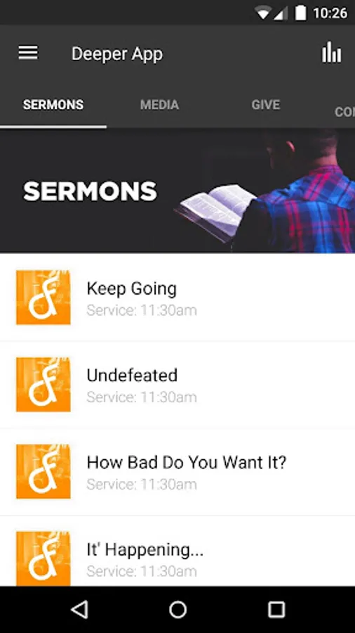 The Deeper Fellowship Church App was created with the Subsplash App Platform.