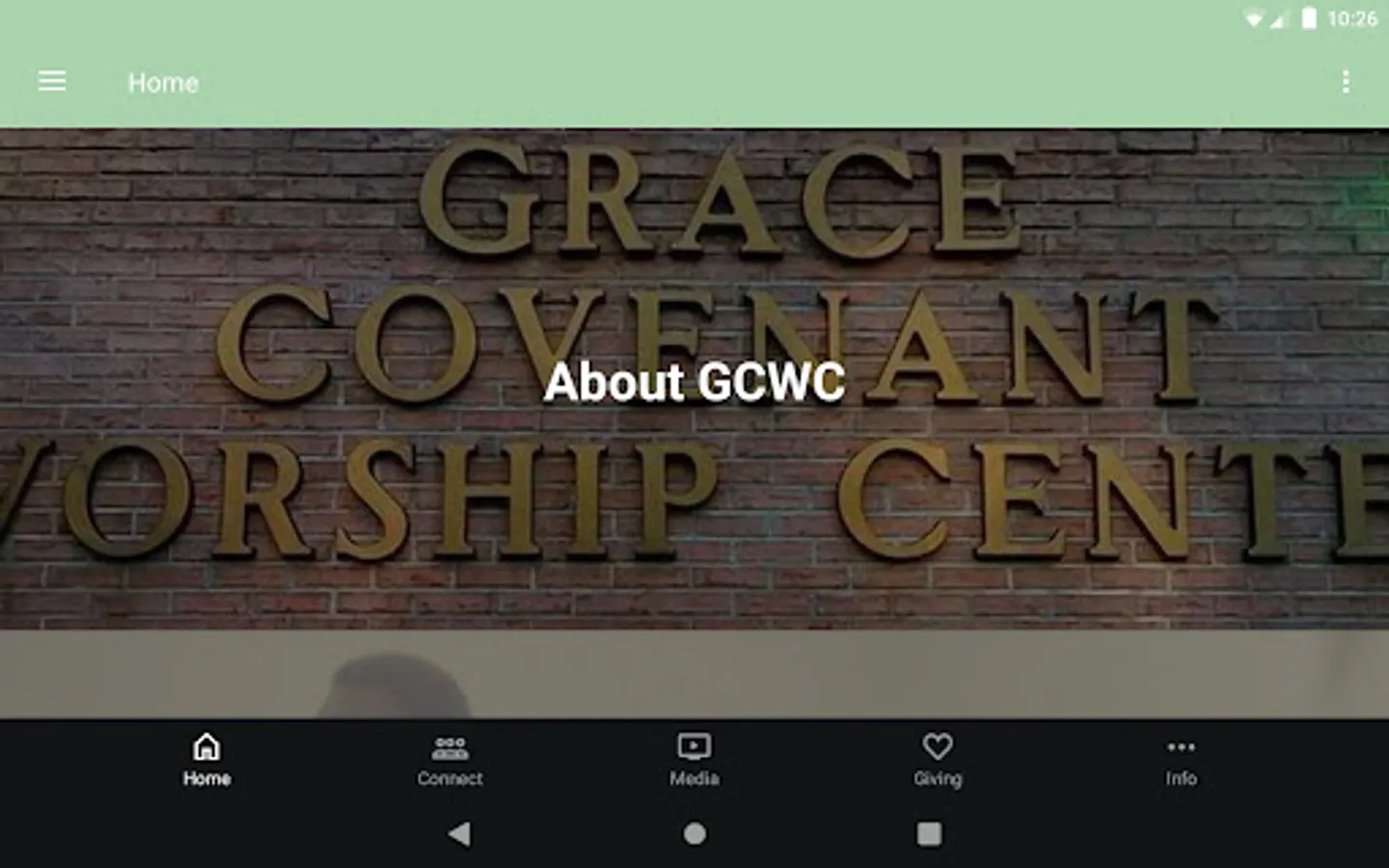 The Grace Covenant Worship Center App was created with the Subsplash App Platform.