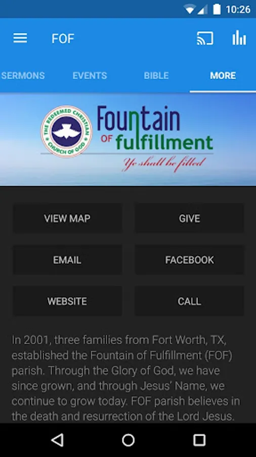 The Fountain of Fulfillment App was created with the Subsplash App Platform.