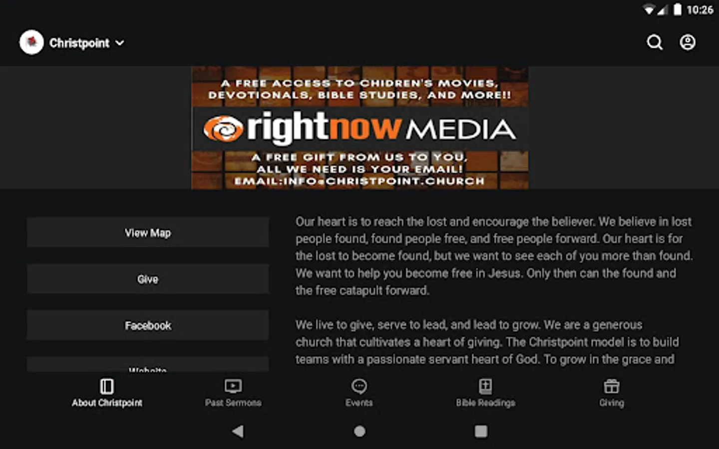 The Christpoint of TN app was developed with the Subsplash App Platform.