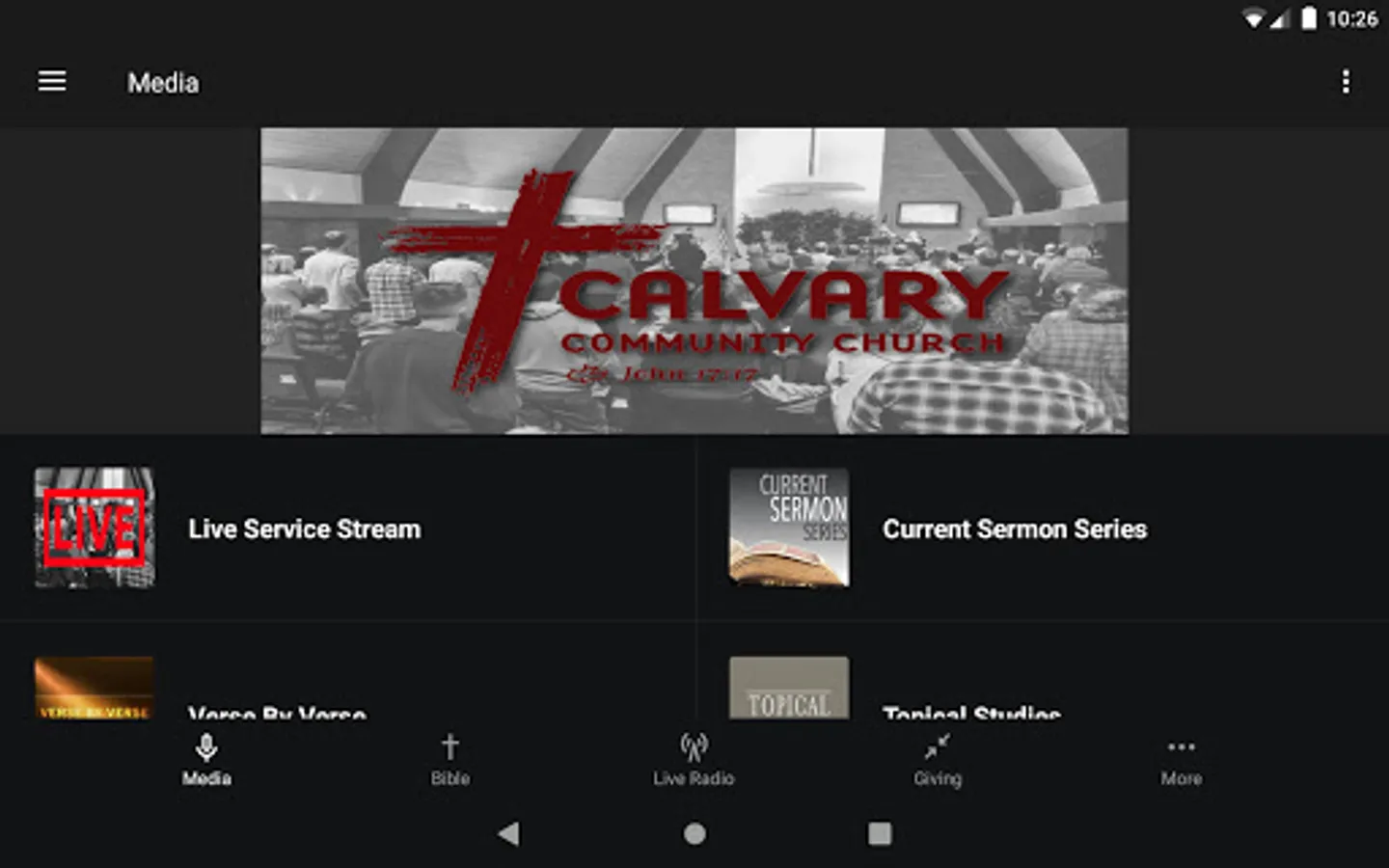 The Calvary Community Church app was developed with the Subsplash App Platform.