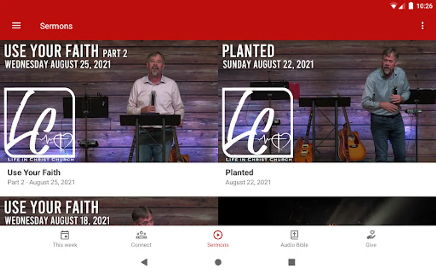 This app will help you stay connected at Life in Christ Church. You can watch, listen, download and share live or past messages; stay up to date with push notifications; give; read the bible; check out our upcoming events, and so much more!