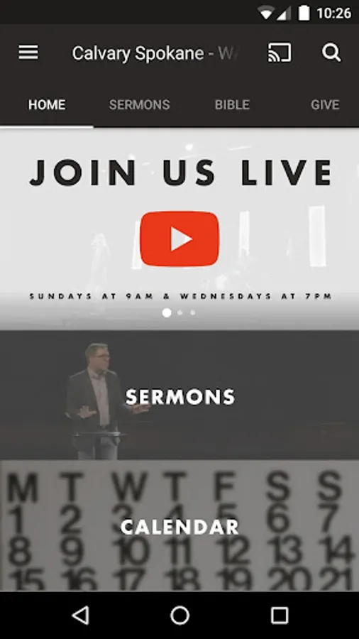 This app is designed to make it easy to access Calvary Spokane's sermons, live stream, and provide away to see what's coming up and get to know what we are about as a church.