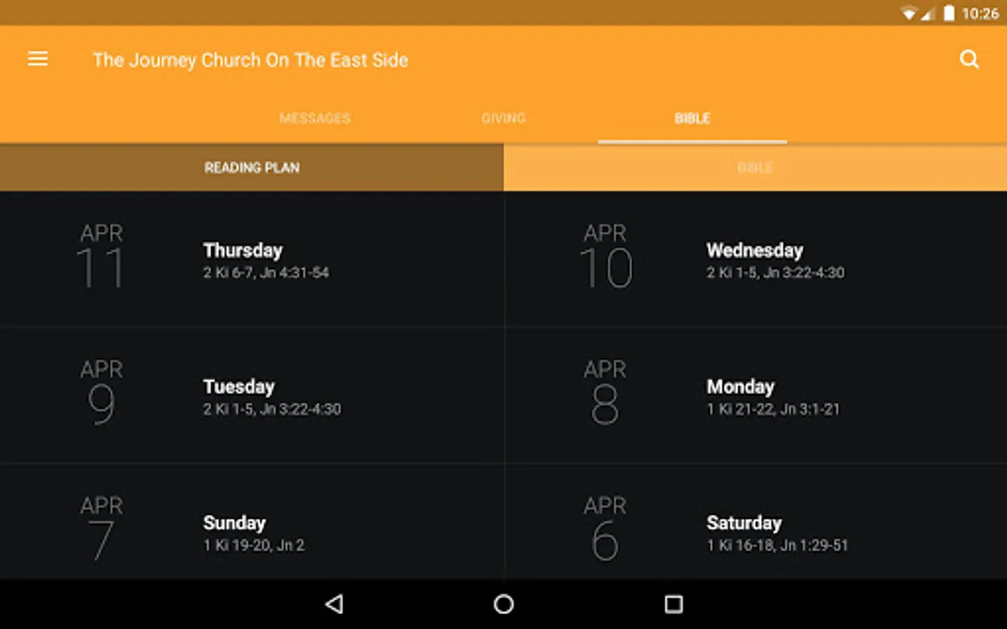 The Journey Church is a group of people who are seeking to become fully-devoted followers of Jesus Christ. We gathering on Sunday morning for singing, studying God's word and great fellowship. We start at 10:15 am with breakfast snacks. Our service starts at 10:30.