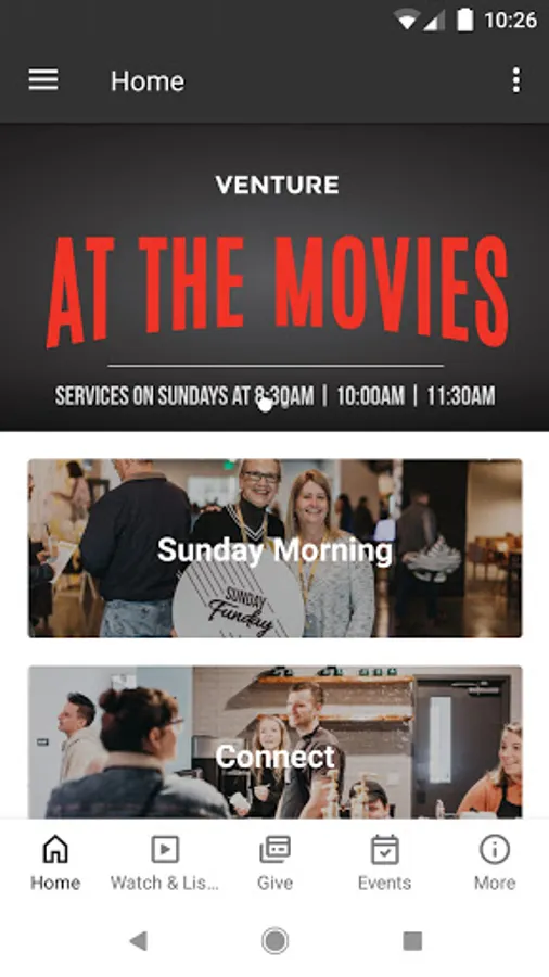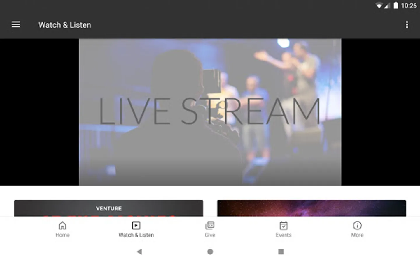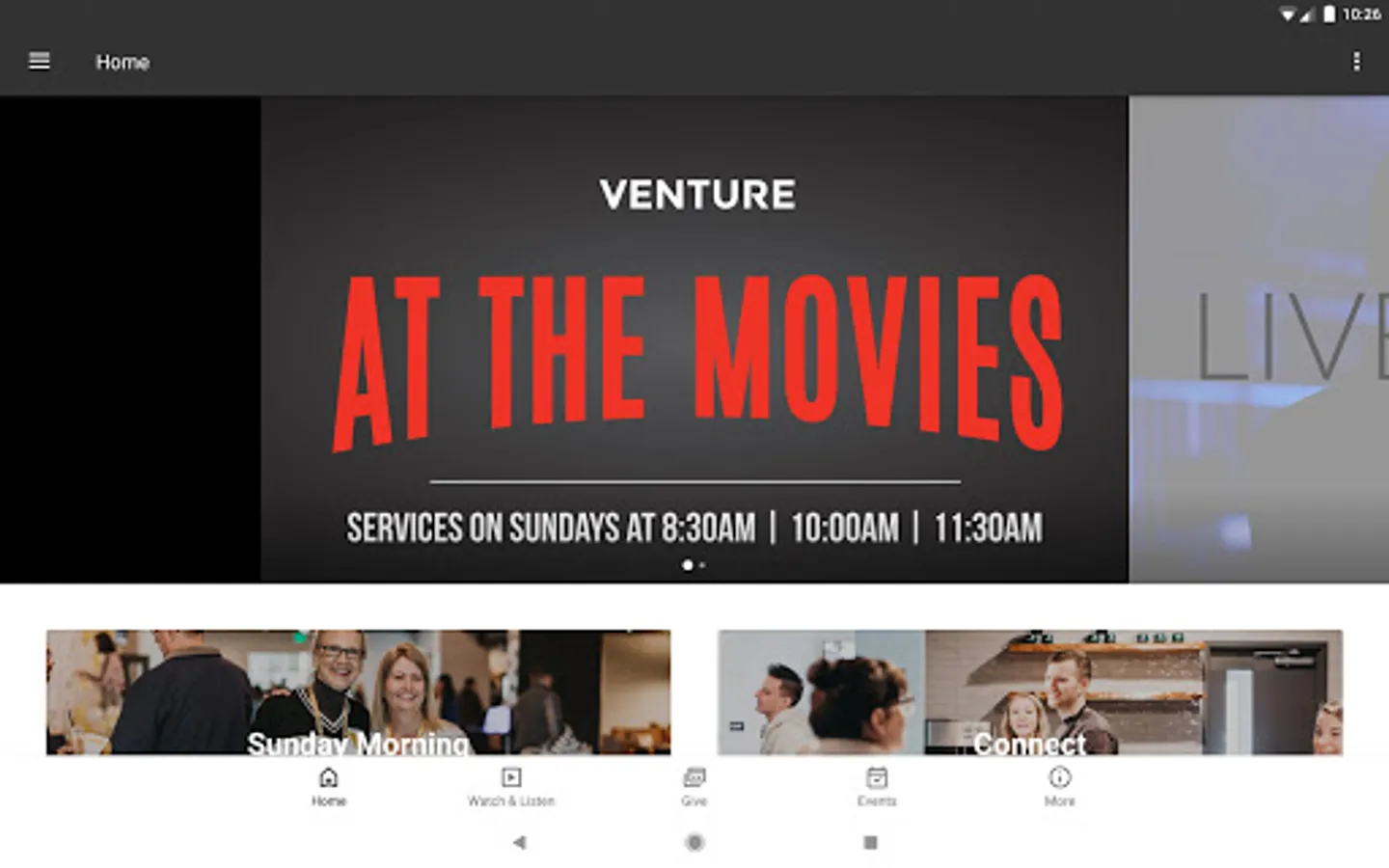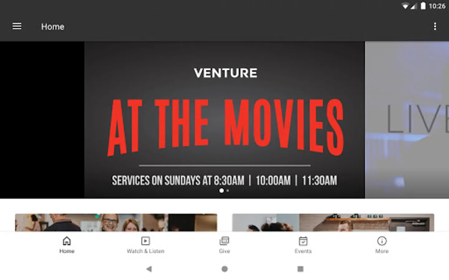 The Venture Church app provides info about events, services, locations and ministries. Use the app to get connected, sign up for small groups, interact with weekend services (program, connection card, information requests and note taking), for Bible reading and to access messages and media.