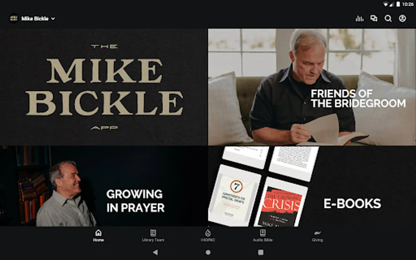 The purpose of the Mike Bickle App is to equip Friends of the Bridegroom through weekly and monthly meditations and teachings focused on Intimacy with Jesus and the End Times message. You will have access to weekly 10-minute video sessions where Mike Bickle will lead you deeper into the Forerunner Message, monthly audio tracks where Mike Bickle teaches you how to pray with Biblical passages, and also, all of Mike's books as E-books and AudioBooks within the app, and much more!