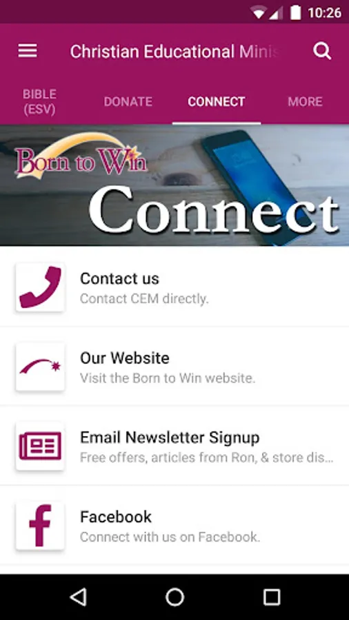 Born To Win also features Christian Music, Holy Day Calendar, Sun & Moon Information, Inspirational Scripture Graphics, as well as more articles and Christian podcasts. Simply go to “More” to discover even more useful content to support your faith.