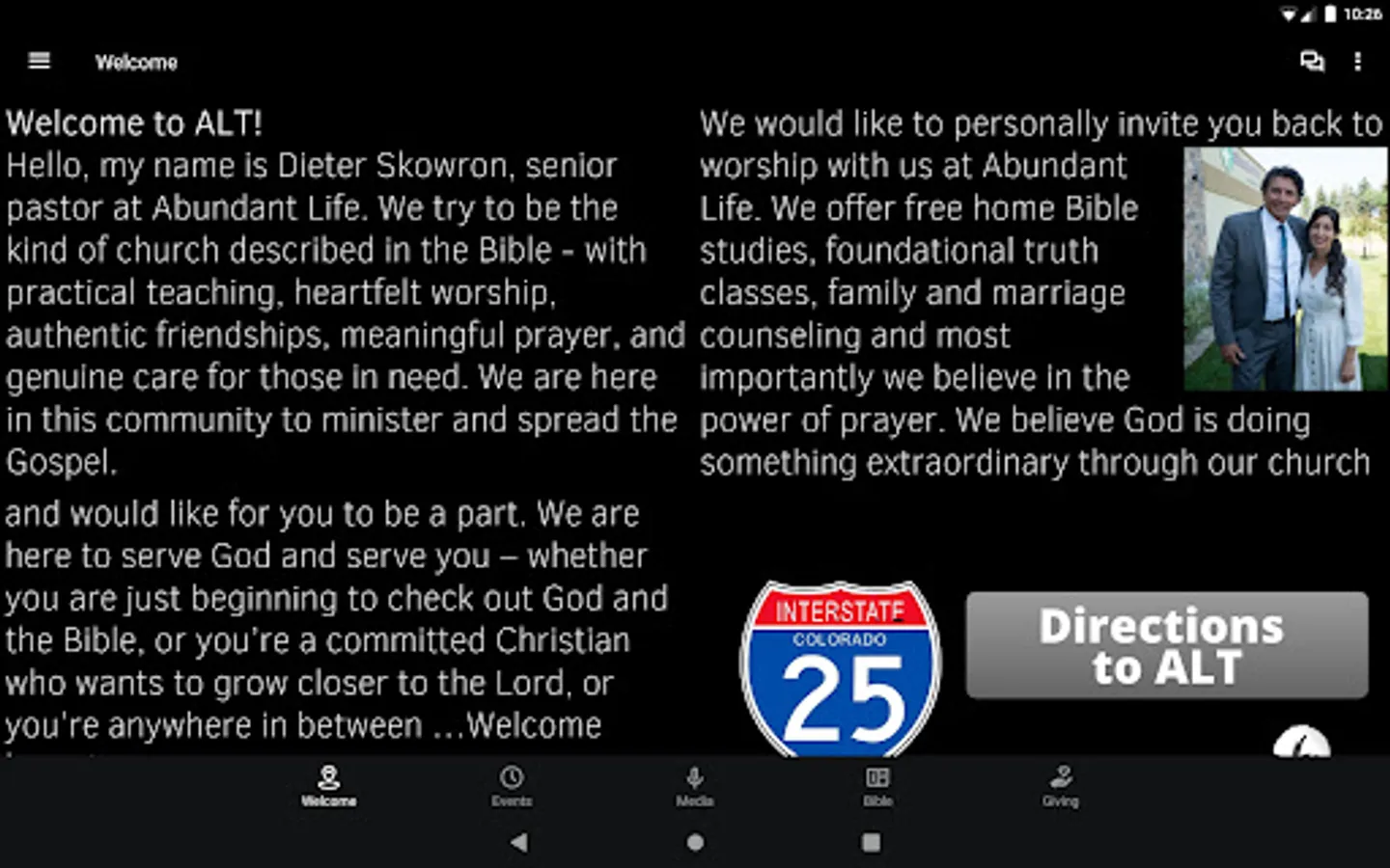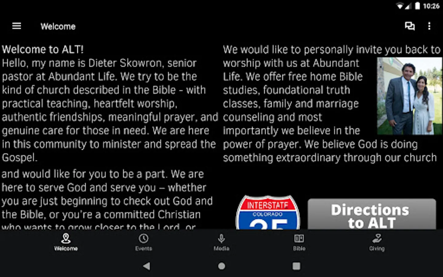 This is the official Abundant Life Tabernacle Church app. Download to hear from Pastor Dieter Skowron and the ministry team. You'll also have access to our live video stream from the services so you can experience ALT live each weekend.