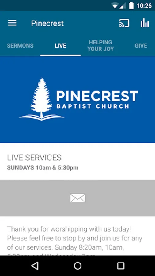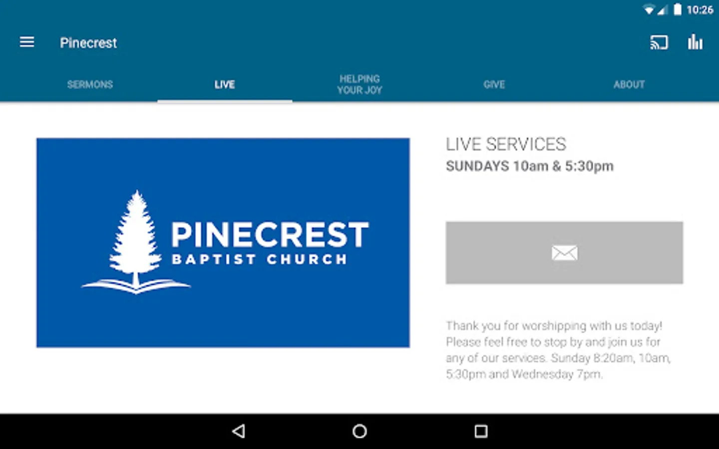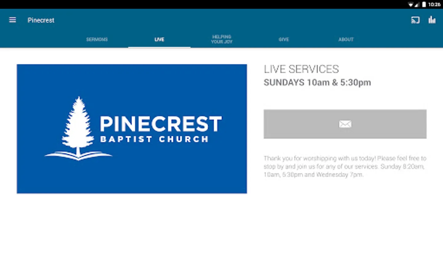 Pinecrest Baptist Church is a church family that genuinely cares about all people. Our mission is to Connect people to Jesus Christ and his church by Growing in His Word, Serving other people, and Sharing the gospel in our community and around the world. We have services every Sunday at 10 am and 5:30 pm, and our adult Bible studies meet every Wednesday at 7 pm. You're always welcome to come and be our guest at any times. There is a place for everyone, and we can't wait to meet you!